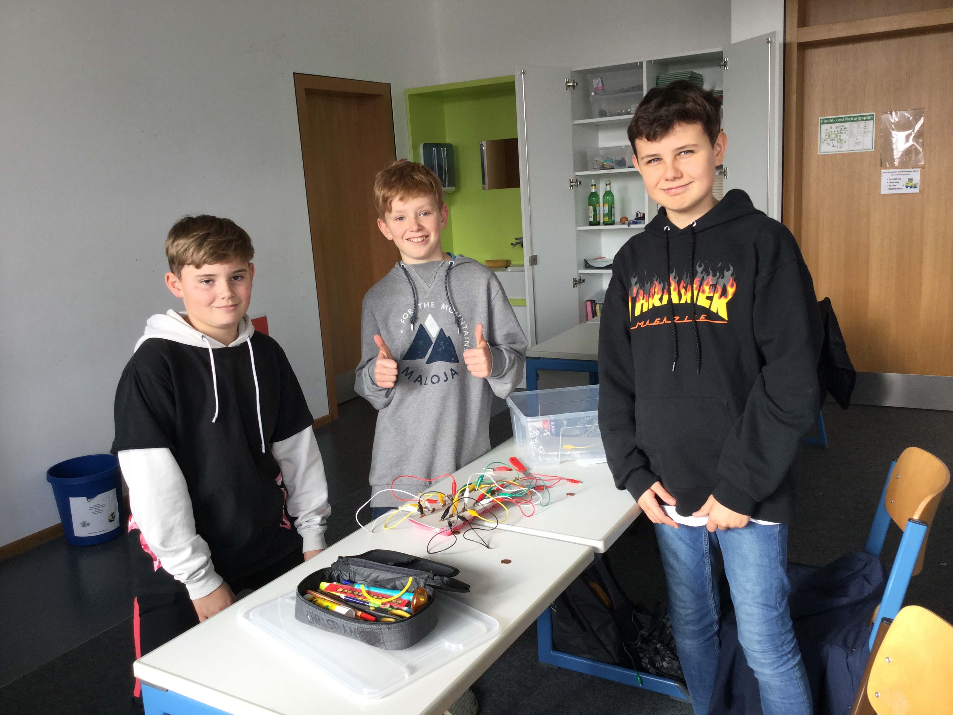 Coole und nützliche Gadgets aus Alltagsgegenständen basteln und sich damit aus brenzligen Situationen retten – das wär was! Doch ist das in den Filmen echt oder nur Fake? Die Technik Jungs der 6 B (2019/2020) hatten das Ziel eine Apfeltaschenlampe zu bauen und einen kleinen Mc Gyver Film dazu zu drehen. Trotz zahlreicher Versuche und Tricks die Lampe mit einer Obstbatterie zum Laufen zu bringen, hatten wir nur wenig Erfolg. Der Strom der mit Hilfe von Obst und Gemüse erzeugt werden kann reicht nicht. Gemeinsam entwickelten wir eine Idee und unserem „Mc Gyver Robin“ gelang es eine Apparatur zu bauen, die diesen Trick möglich machte!