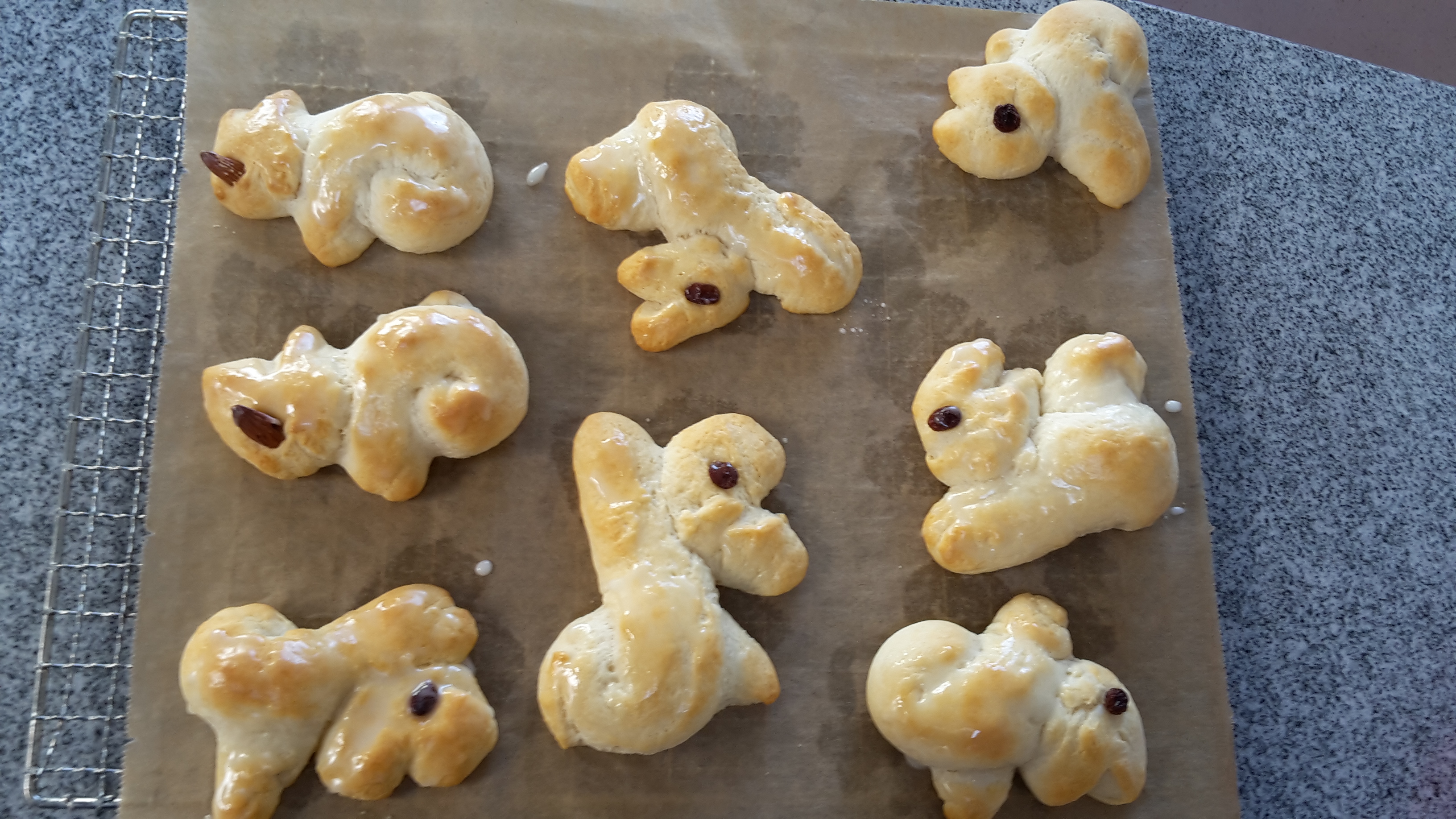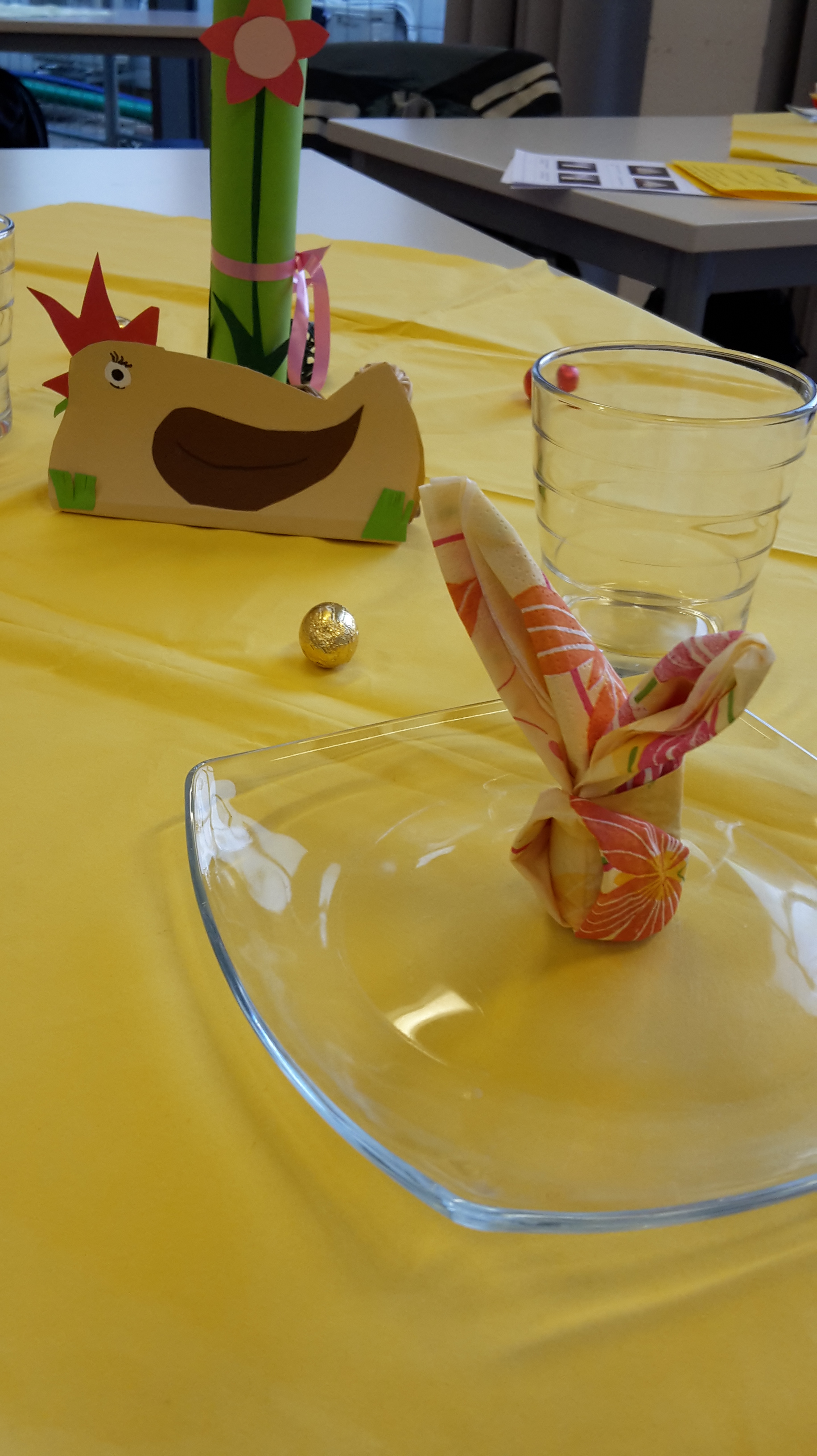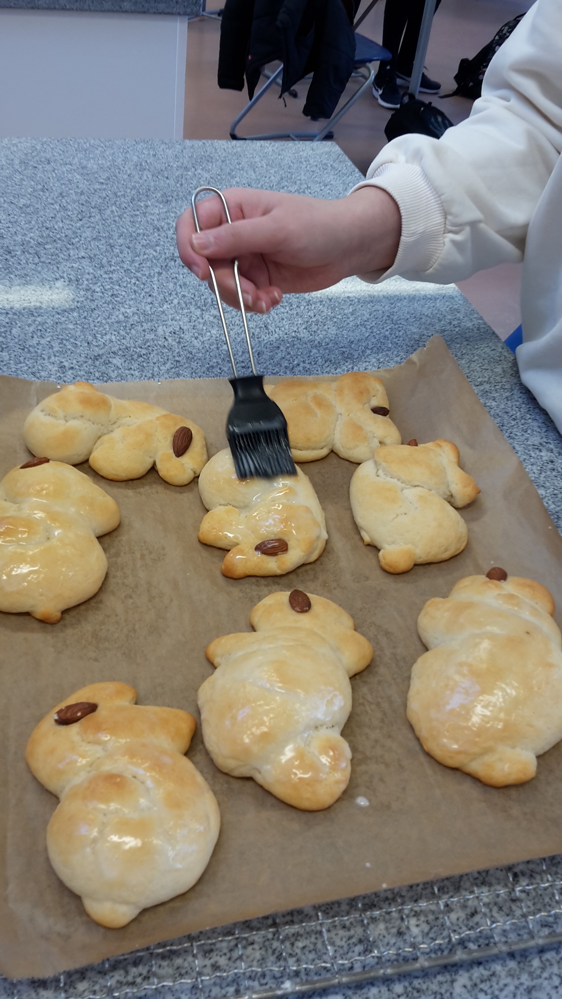 Zur Einstimmung auf die Osterzeit durften die 7. und 8. Klassen Osterhasen aus Quark-Öl-Teig backen. Zudem haben die Schüler den Tisch passend zum Thema Frühling/Ostern dekoriert.
