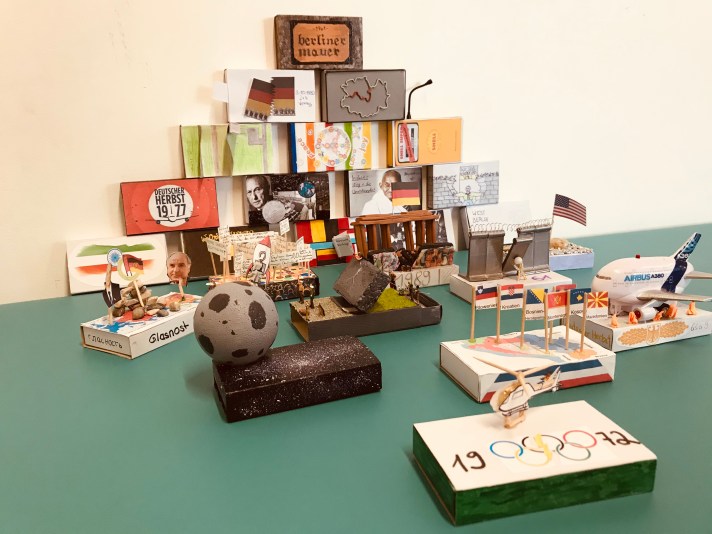 Dass es auch anders geht, zeigen unsere 10t-Klässler eindrucksvoll mit der kreativen Umsetzung unterschiedlichster historischer Themen in einer „Geschichte in der Box“.