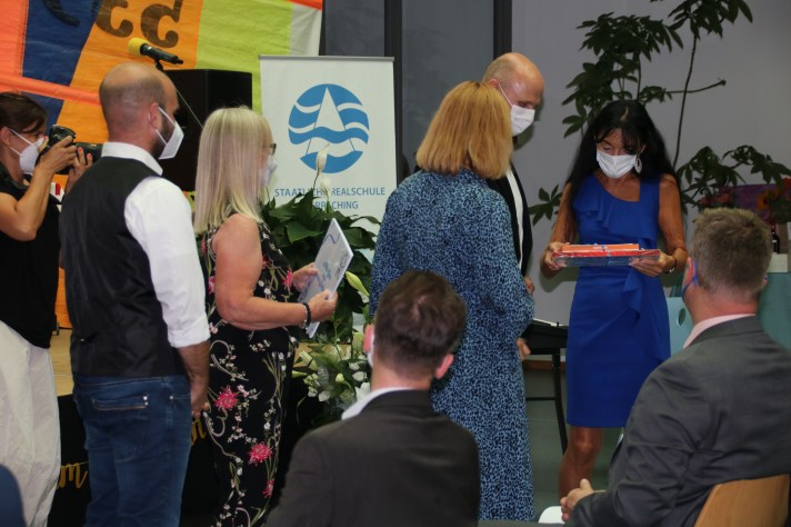Der künftige Ministerialbeauftragte für Oberbayern West, Michael Heimes, verlas zunächst offiziell die Urkunde zur Versetzung in den Ruhestand zum 31.07.2021, wurde dann aber auch sehr persönlich und dankte Rita Menzel-Stuck, welche er bereits seit 16 Jahren aus Schulleitertagungen kennt, sehr für die stets vertrauensvolle Zusammenarbeit sowie ihre Hilfsbereitschaft und Ratschläge und übersandte herzliche Grüße von der Realschulabteilung des Kultusministeriums.