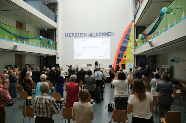 Aufgrund von Corona durften zu dem offiziellen Festakt nur 50 Gäste persönlich anwesend sein, ein Wermutstropfen für Rita Menzel-Stuck, die selbst gerne feiert und der es immer wichtig war, dass neben der Wissensvermittlung auch Lebensfreude in die Schule kommt und soziale Kompetenzen gefördert werden. Alle anderen Gäste konnten per Livestream die Veranstaltung verfolgen und erlebten ein sehr abwechslungsreiches Programm.