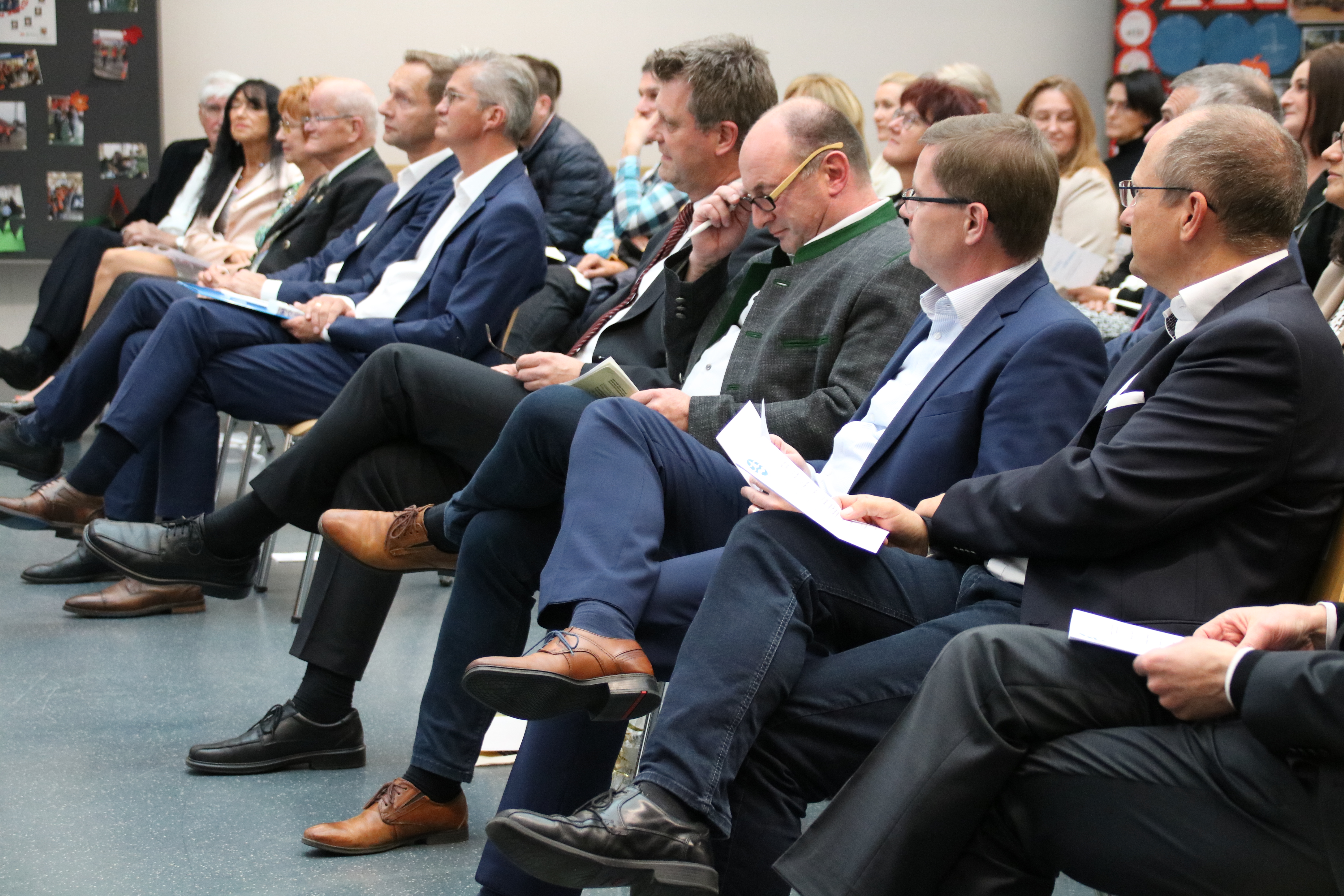 Viele Ehrengäste kamen zur offiziellen Amtseinführung des neuen Schulleiters Christian Schmitz. Darunter der Ministerialbeauftragte Michael Heimes, der stellvertretende Landrat Georg Scheitz, der Vorsitzende des Zweckverbands Manfred Walter, sein Stellvertreter und Herrschinger Bürgermeister Christian Schiller sowie der Dekan Simon Rapp. Außerdem der ehemalige Schulleiter Jürgen Kutta und die Vorgängerin von Christian Schmitz, Rita Menzel-Stuck, SchulleiterInnen der angrenzenden Schulen, VertreterInnen des Elternbeirats, die SMV und das Kollegium.