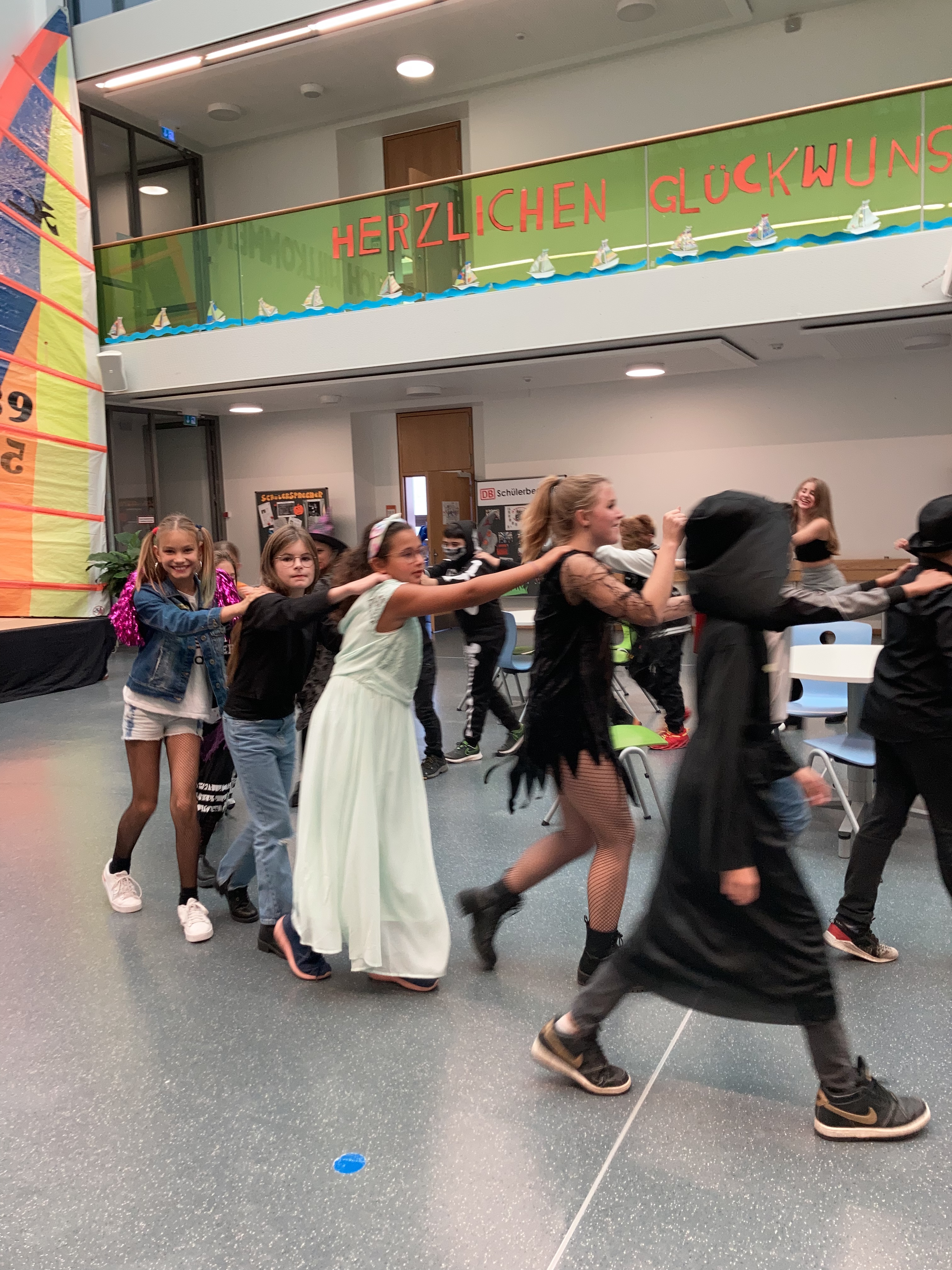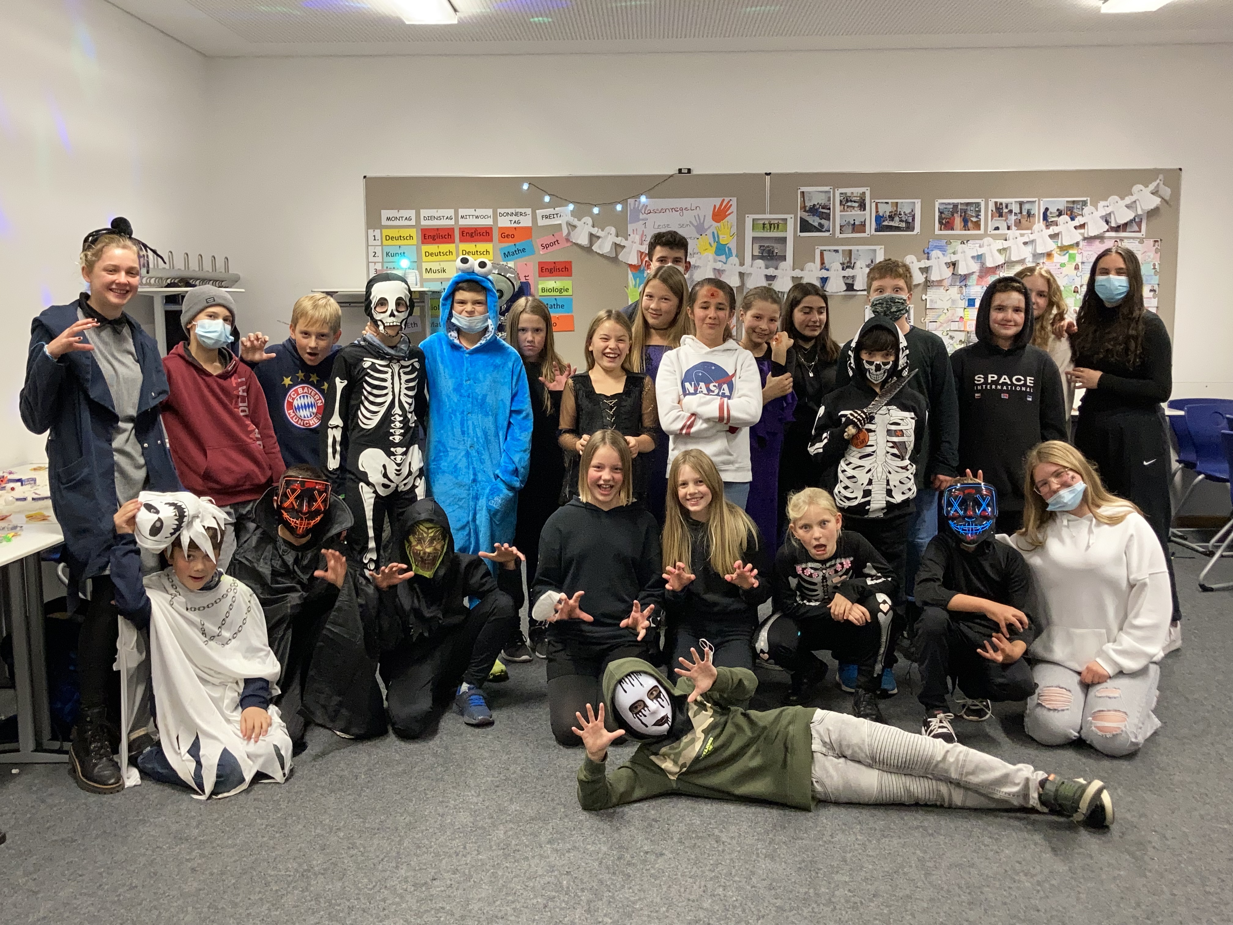 In allen 5 fünften Klassen war heute etwas los! Eine große Anzahl an Vampiren, Mumien, Gespenstern und allerlei gruseliger Gestalten konnte in den Klassenzimmern gesichtet werden – einige davon doppelt maskiert. Wie schön, dass spielerische Lebensfreude durchs Schulhaus geistern konnte!