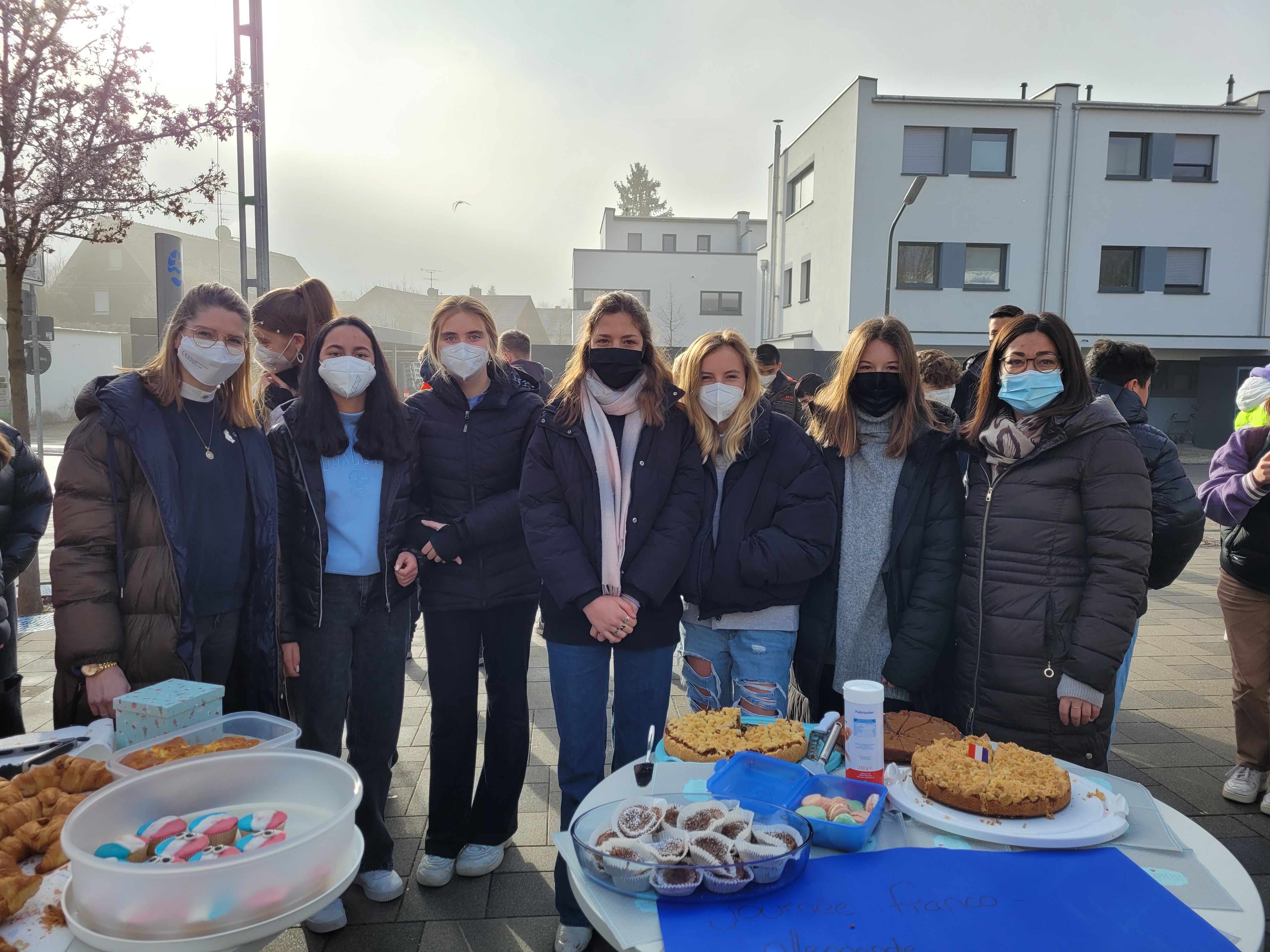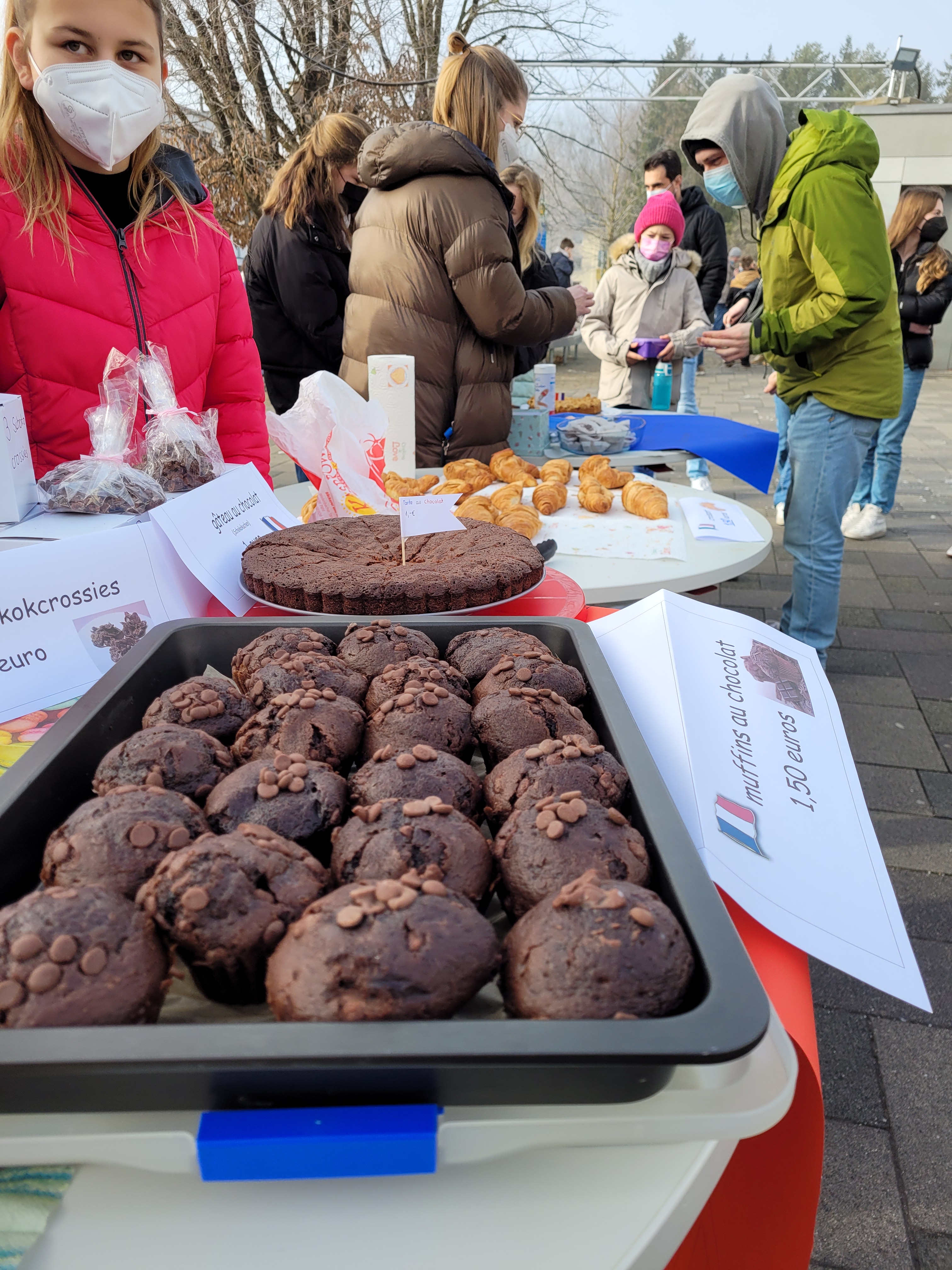 Es heißt nicht umsonst – Leben wie Gott in Frankreich. Deshalb haben die Schüler*innen und in manchen Fällen bestimmt auch deren Eltern – Merci à tous ! – am Wochenende fleißig mehrere Kuchen, tartes und macarons gebacken, um diese am Montag in der Pause zu verkaufen. Miam, trop bon!