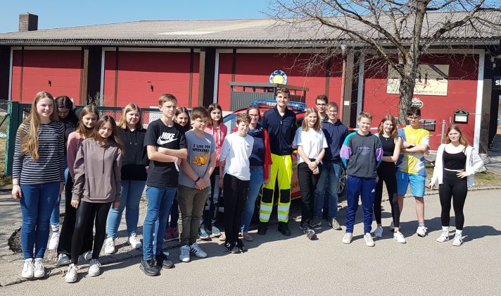 Bei strahlendem Sonnenschein bekamen die Schulsanitäter diese Woche Besuch des First Responders der Feuerwehr Herrsching. Sie lernten wer das Rettungsfahrzeug besetzt, wann der First Responder alarmiert wird und an unsere Schule kommt, sowie welche Ausrüstung die Retter dabei haben. Auch wurden die Schüler für die wichtige Aufgabe des Einweisens vor dem Schulgebäude bei Notfällen sensibilisiert.