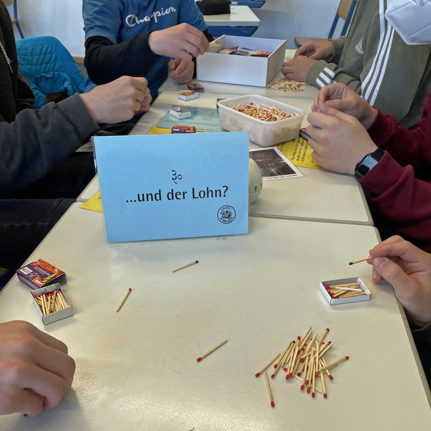 „Teilen – lernen – miteinander für eine zukunftsfähige Erde“: Das Motto der Indienhilfe Herrsching e.V. steht stellvertretend für den Vortrag von Frau Wallrapp, der den Schülerinnen und Schülern der Klasse 8 B verdeutlicht, unter welchen Bedingungen Gleichaltrige in Indien leben. Mit originalen Gegenständen aus dem Subkontinent (zum Beispiel einem Teekochgeschirr) erklärt sie der Klasse die schwierige und oft so hoffnungs- und ausweglose Situation der Kinder in vielen Teilen Indiens. Auch auf das Thema „Frausein in Indien“ geht sie ein. Das Sortieren Verpacken von Streichhölzern, eine monotone Arbeit, die in Südindien teils immer noch von Kindern manuell in Streichholzfabriken durchgeführt wird, lässt sie die Schülerinnen und Schüler eigenaktiv nachvollziehen und ermöglicht damit eine Erfahrung, die den Kindern sicherlich nachhaltig in Erinnerung bleibt.