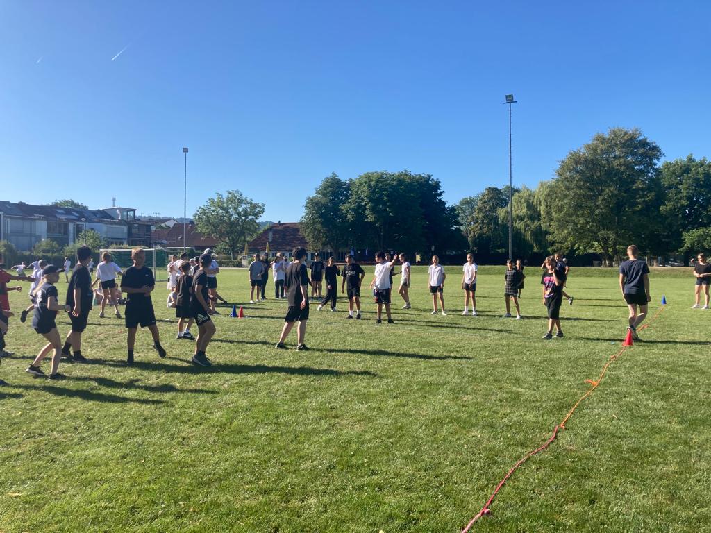 Anschließend ging es für die 5. und 6. Klassen zum Sportplatz am See. Es spielte pro Jahrgangsstufe jede Klasse gegeneinander und die Gesamtpunktzahl entschied dann über den Ranglistenplatz. Die Stimmung war super und alle SchülerInnen machten motiviert mit oder feuerten an.