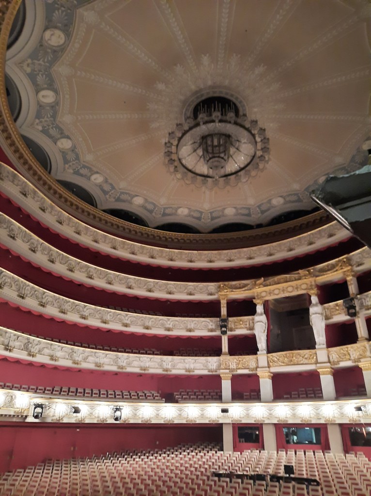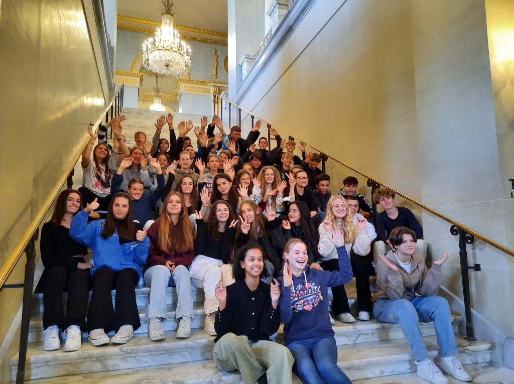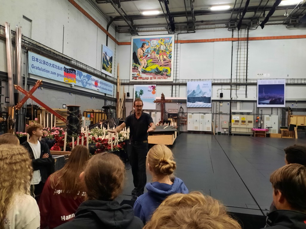 Am Freitag, den 23.09.2022, fuhren die Klassen 8 D und 9 D nach München und bekamen eine Führung in der Staatsoper. Es handelt sich hier um ein Haus der Superlative. Die Bühne ist über 2500 m2 groß. Hier treffen Künstler von Weltklasse aufeinander. Es gibt fast jeden Tag eine Vorstellung, außer es wird für ein neues Stück umgebaut. Die Führung wurde für alle zu einem besonderen Erlebnis, als der Onkel einer Schülerin aus der 9 D hinzukam. Herr Wurzbacher arbeitet an der Staatsoper als Bühnentechniker. Wir standen auf der Bühne, direkt vor dem Orchestergraben. Er zeigte uns die Nebenbühne und Bereiche, in denen die Bühnenbilder aufbewahrt werden. Wir sahen unter anderem den Nachbau eines Straßenzugs in Paris zur Jahrhundertwende. Ein riesiger Kronleuchter hing von der Decke. Ein echter Oldtimer stand auf einem rollbaren Untersatz. Für ein Bühnenstück wurde ein täuschend echt aussehender Scheiterhaufen nachgebaut. Laut Herrn Wurzbacher müssen Bühnenarbeiter immer ganz in schwarz gekleidet sein, damit sie während eines Umbaus in der Vorstellung unsichtbar sind. Besonders interessant für die Schüler*innen der 9. Klassen ist, dass es viele neue Ausbildungsberufe in diesem Bereich gibt, z.B. Veranstaltungstechniker, Requisite, Dekoration. Herr Wurzbacher nannte viele spannende Fakten hinter den Kulissen. Einströmender Wasserdampf über der Bühne dient dem Brandschutz. Es gibt insgesamt 76 Züge, um Bühnenbilder und über 800 Scheinwerfer zu steuern. Das Licht wird mit Software für jede Szene vorprogrammiert und läuft während der Vorstellung automatisch ab. Während einer Vorstellung muss jeder Darsteller wissen, wann er wo auftreten und abtreten muss, damit die Abläufe funktionieren. Rennen, Pfeifen sowie das Tragen einer Mütze sind aus Sicherheitsgründen verboten. Auch die Tante einer Schülerin aus der 9 D begleitete die Führung. Sie ist Chorsängerin am Hause und erzählte uns sehr lebendig aus ihrem Berufsalltag. Wir nahmen viele schöne Eindrücke aus der Staatsoper mit wollen auf alle Fälle wieder kommen!