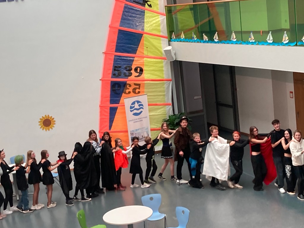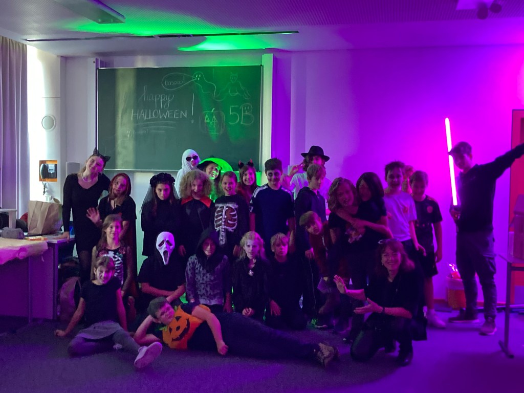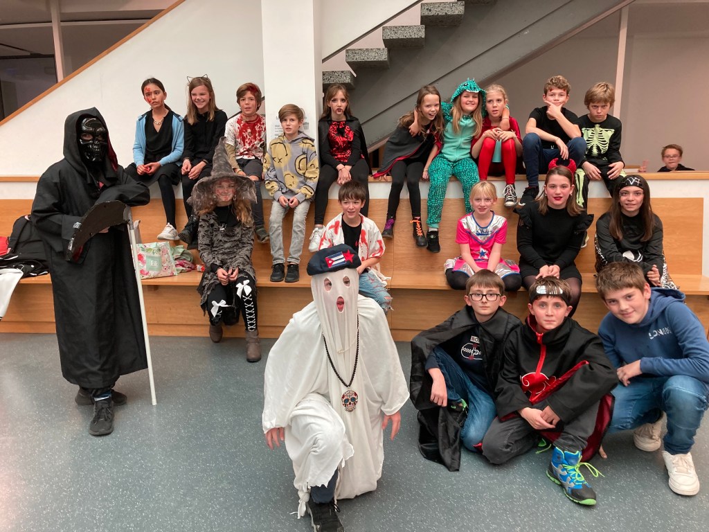 Viele gruselige Gestalten trieben sich wieder in den Klassenzimmern der Fünftklässer:innen, im Atrium und auf den Gängen unseres Schulhauses herum: HALLOWEEN wurde zelebriert! Die Tutor:innen hatten sich einiges einfallen lassen und so konnte man Gespenster, Skelette und allerlei schaurige Figuren beim ausgelassenen Tanzen und Spielen beobachten…