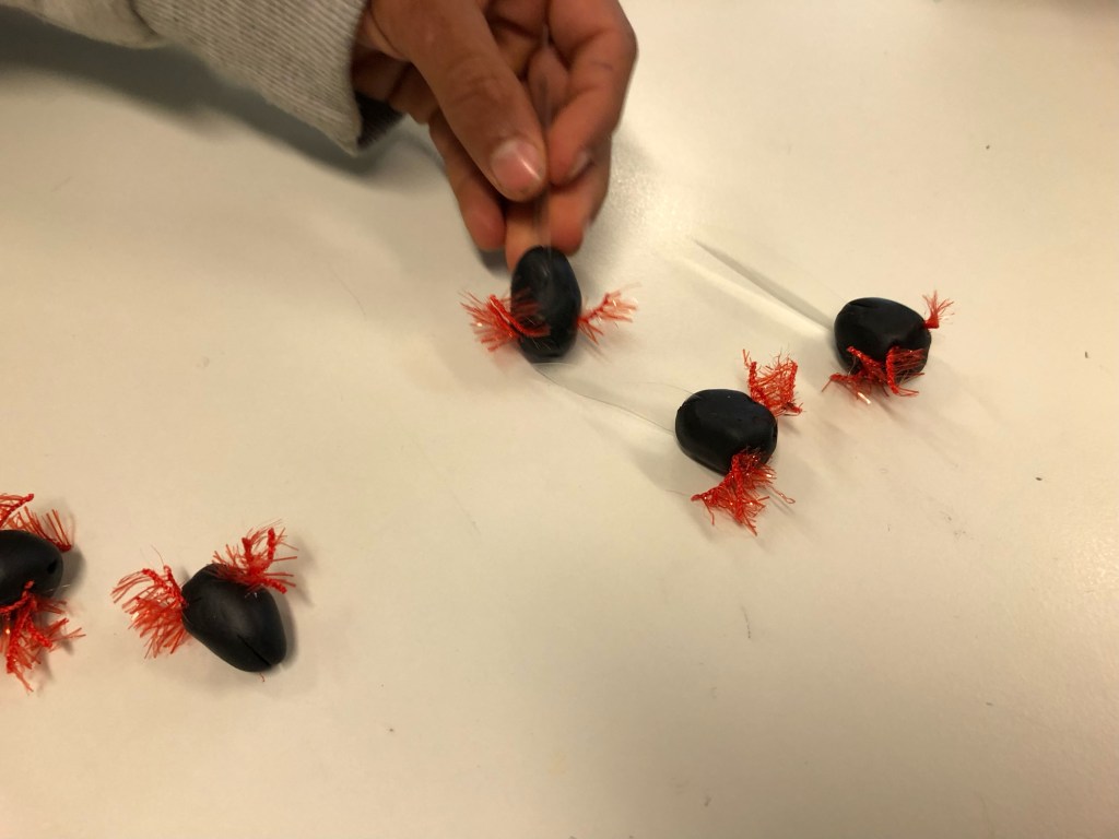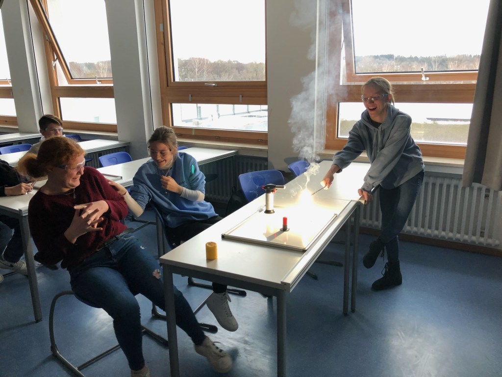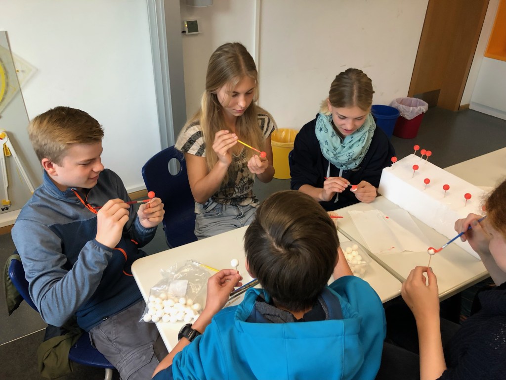 In Chemie wird natürlich auch experimentiert und mit Modellen gearbeitet. Teilweise sind diese aber nicht als fertige Modellbausätze verfügbar. Die Klasse 9B bastelt daher „Kugelwolken-Modelle“, um den räumlichen Aufbau eines Atoms und der Moleküle, die sie bilden, genauer zu erklären. Das sind Fakten, die man ohne ein Modell als Vorstellungshilfe nur schwer erklären kann.