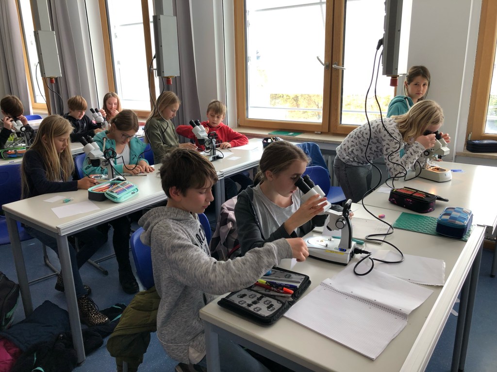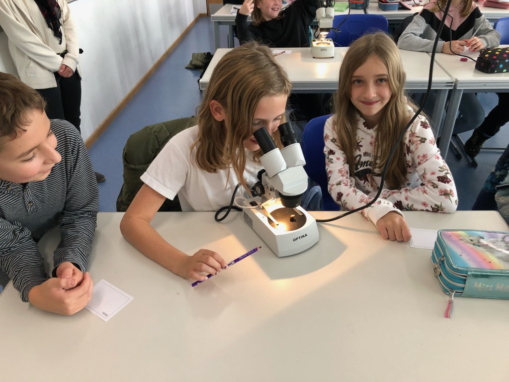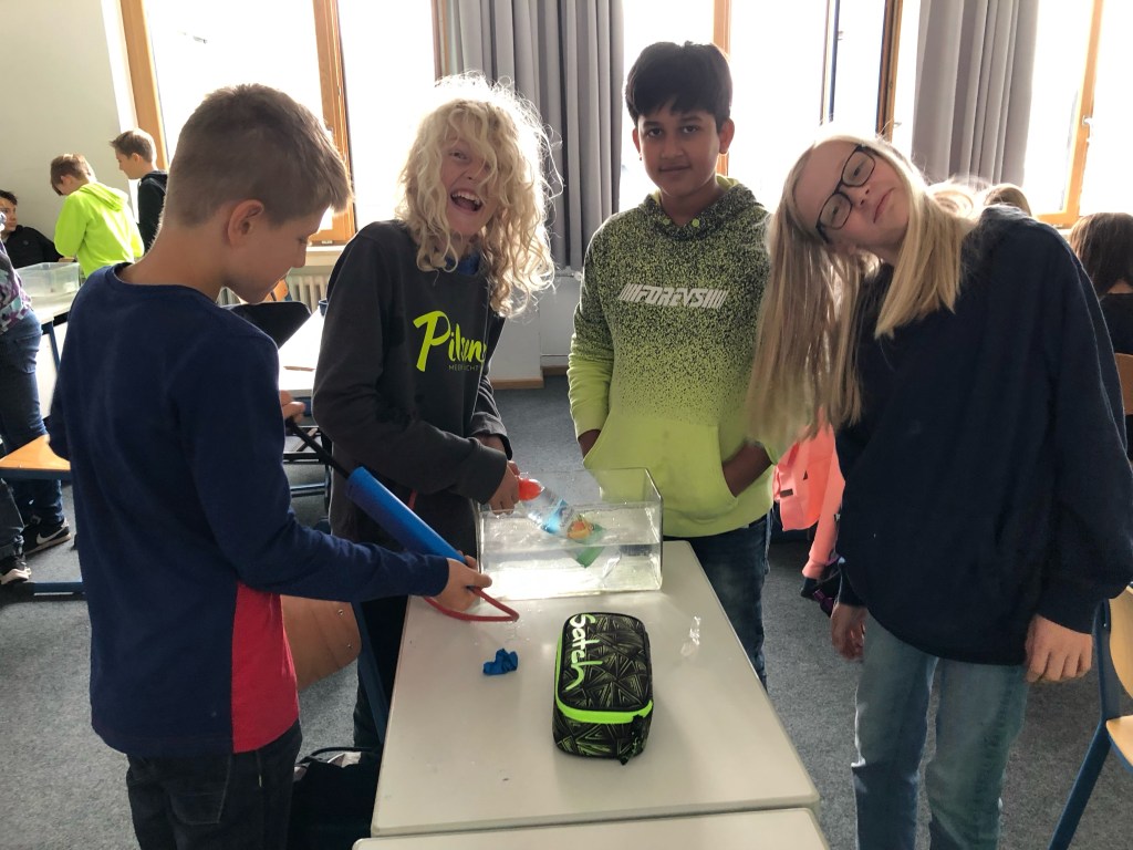 Wie kann ein Fisch unter Wasser überleben? Und warum ist er so gut an ein Leben im Wasser angepasst? Wie wird aus der Kaulquappe ein Frosch? … Das sind Fragen denen sich die Klasse 6D gestellt hat. Die Klassen 7A und 7D führen verschiedene Experimente zum Wassertransport in Pflanzen durch und mikroskopieren die verschiedenen Pflanzenbestandteile und Einzeller. Soweit es möglich ist wird natürlich mit dem Original gearbeitet. Aber oft müssen Unterrichtsinhalte mit Modellen und Versuchen erarbeitet werden. Teilweise basteln die SchülerInnen die Modelle für ihre Erklärungen selbst.