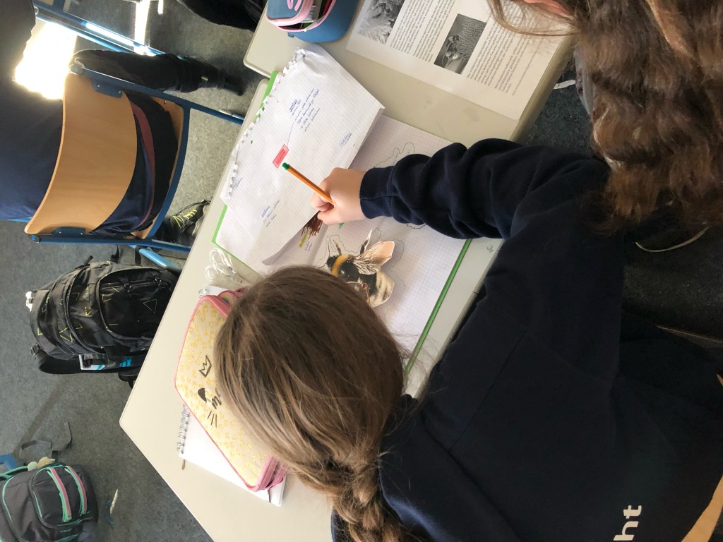 Zum Thema Artenschutz und Biodiversität wurden verschiedene Insekten unter dem Binokular betrachtet, skizziert, bestimmt und verglichen. Selbst die Hefteinträge wurden eigenständig gestaltet.