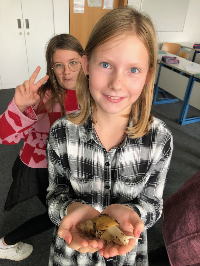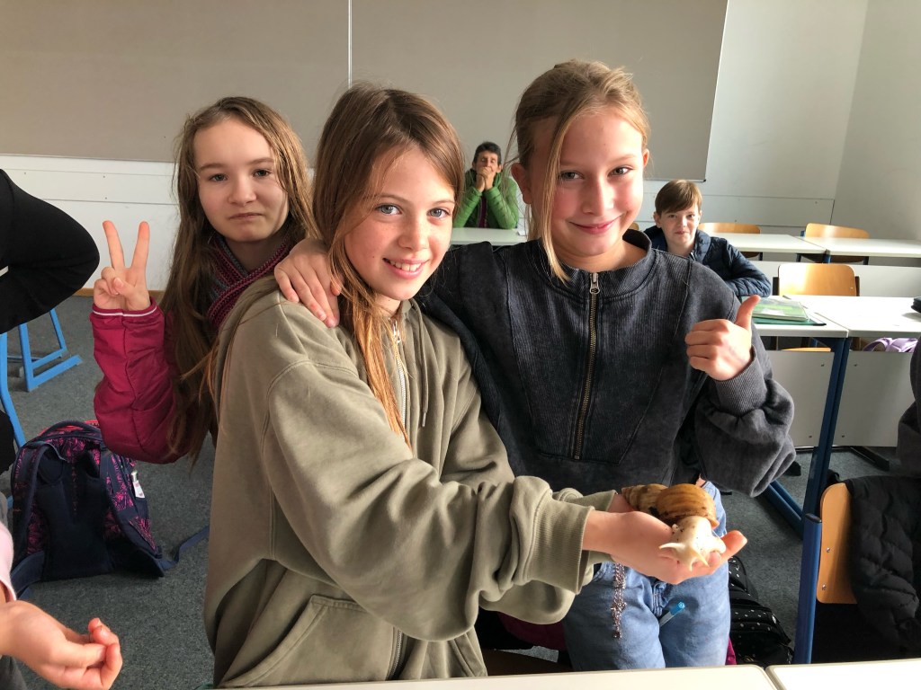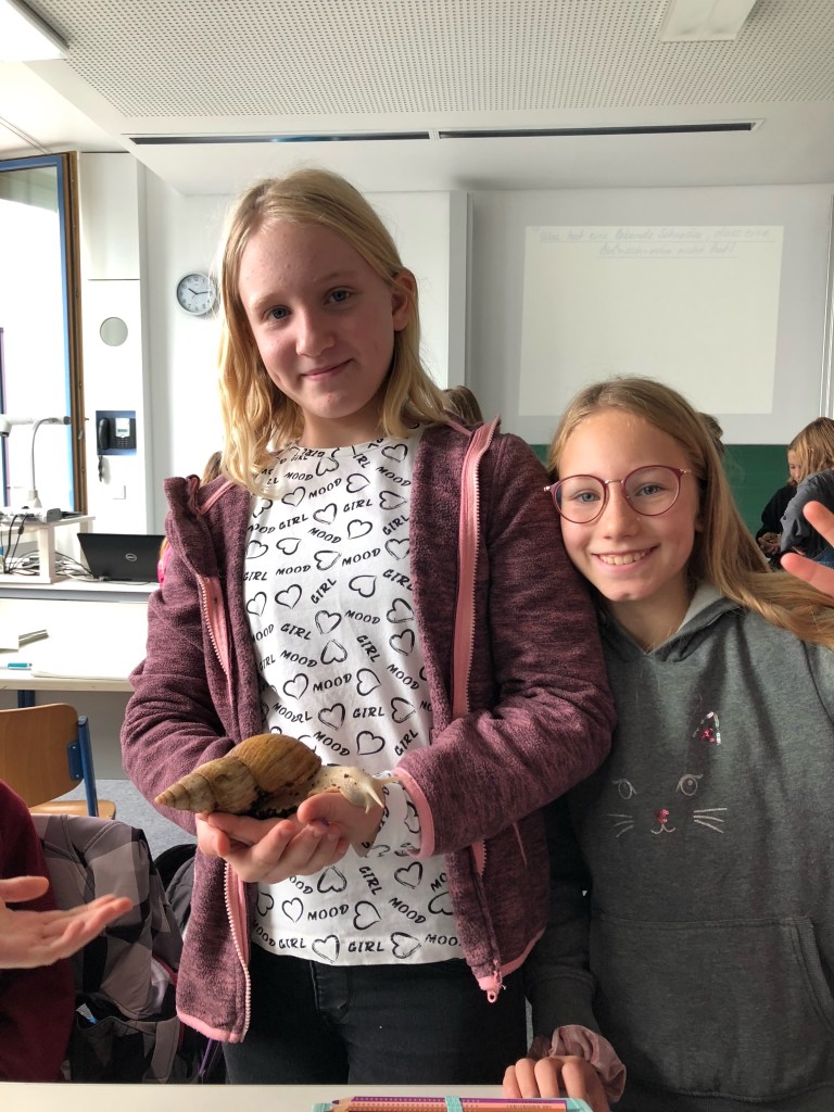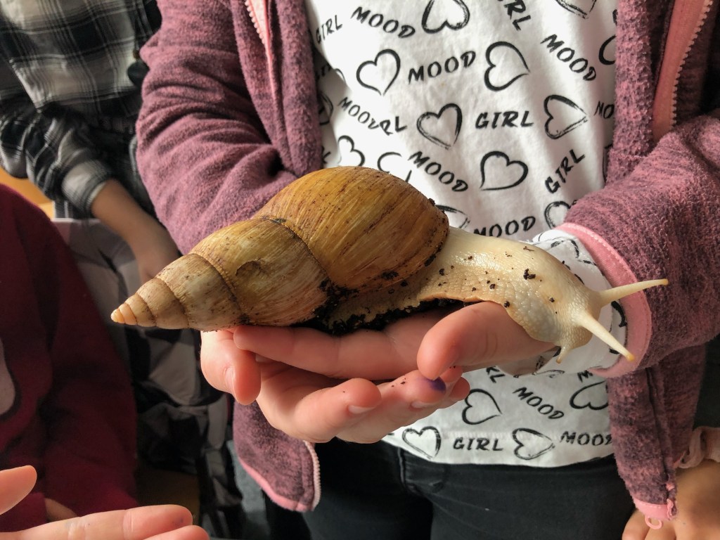 Schnecken kennt jeder von zu Hause! Doch hattest du schon einmal eine Achatschnecke auf der Hand? Die ostafrikanischen Riesenschnecken sind ein ganz besonderer Gast im Biologieunterricht. Die Klasse 5E vergleicht die lebenden Schnecken „Sarah“ und „Monkeys“ mit einer Holzschnecke, um die Kennzeichen eines Lebewesens zu ermitteln.