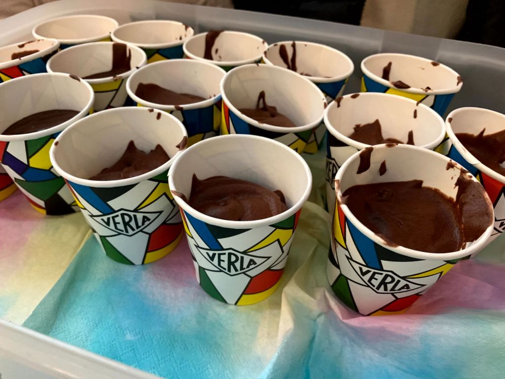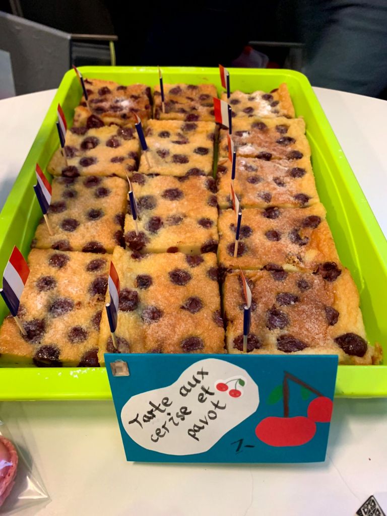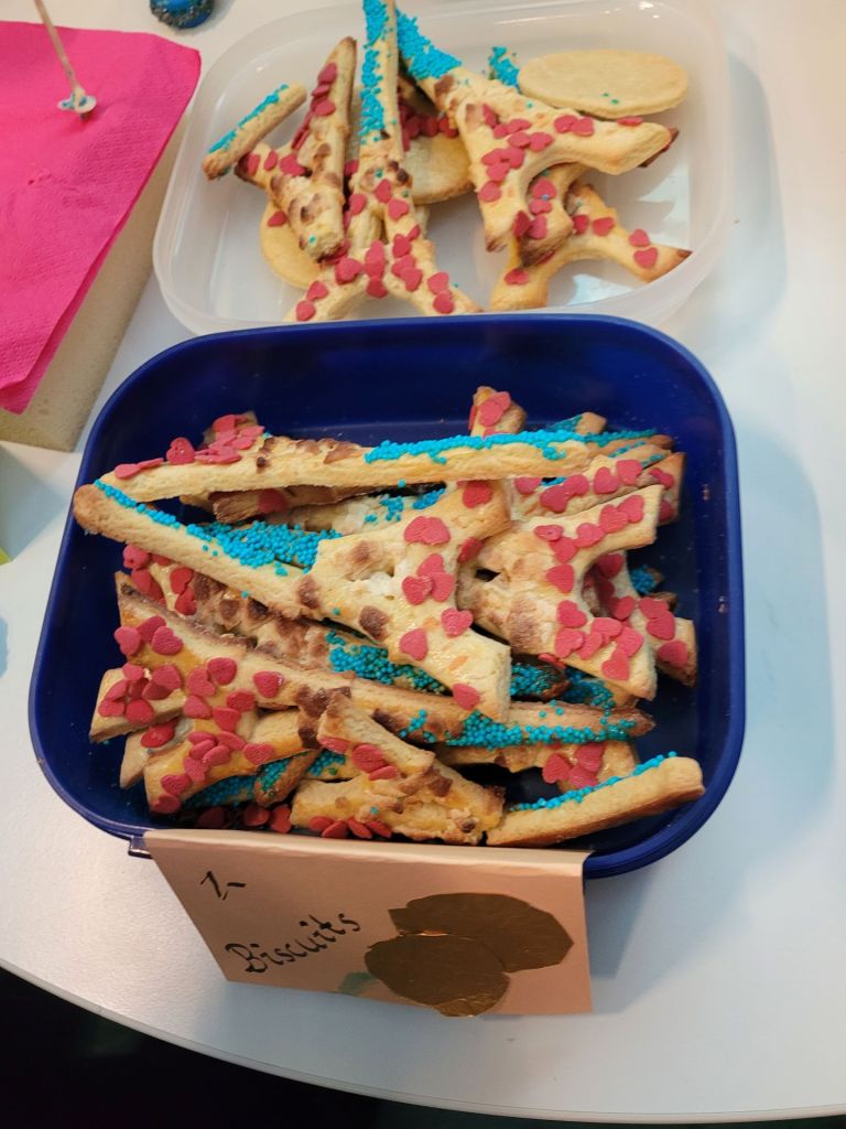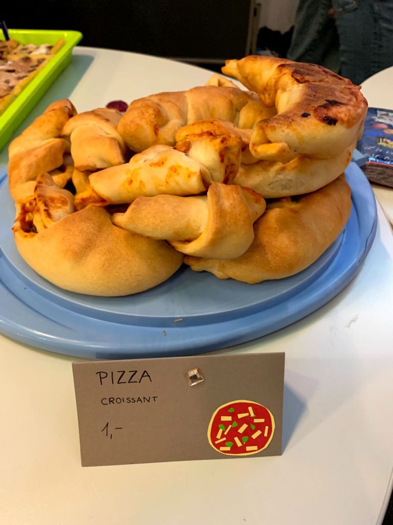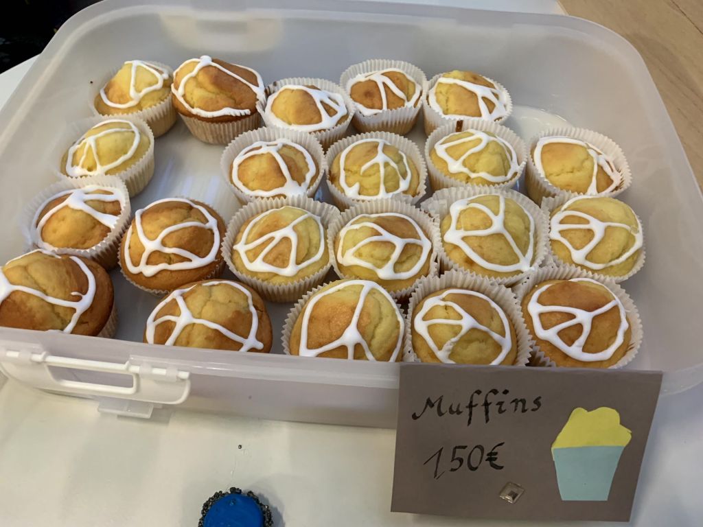 Die FranzösischschülerInnen der Klassen 7 C und 7 D verwöhnten uns in beiden Pausen mit ihren liebevoll dekorierten französischen Leckereien im Atrium. Zeitgleich lief dort eine Präsentation, welche die Klasse 8 E zu Sehenswürdigkeiten, Essen, Musik, Sport und Mode in Frankreich erarbeitet hatte, und zu der im Anschluss ein Quiz beantwortet werden konnte. Wer alle zehn Fragen lösen konnte, erhielt den Code 321: Damit konnte zum einen das Zahlenschloss geöffnet werden und somit auch die Carambars, bei denen sich auf der Innenseite ein französischer Witz versteckt. Zum anderen steht die Zahl für die 321 Millionen weltweit französischsprechenden Menschen – und damit sind all jene, die Französisch als Fremdsprache lernen, nicht mit eingerechnet.