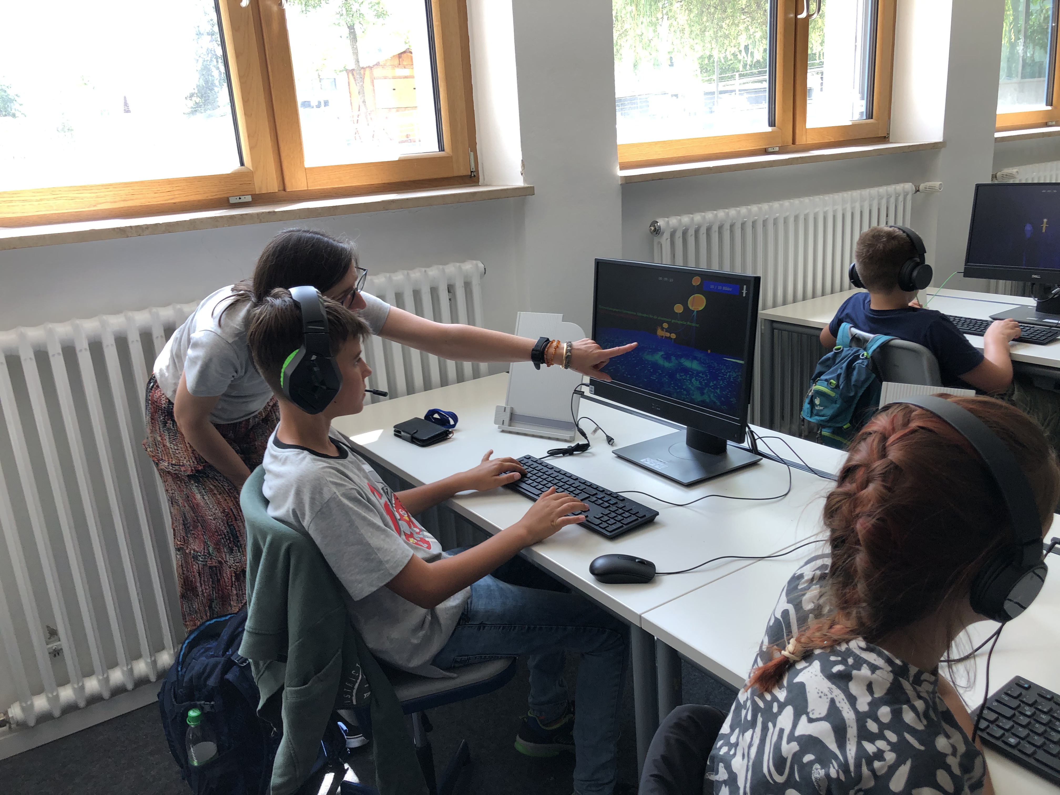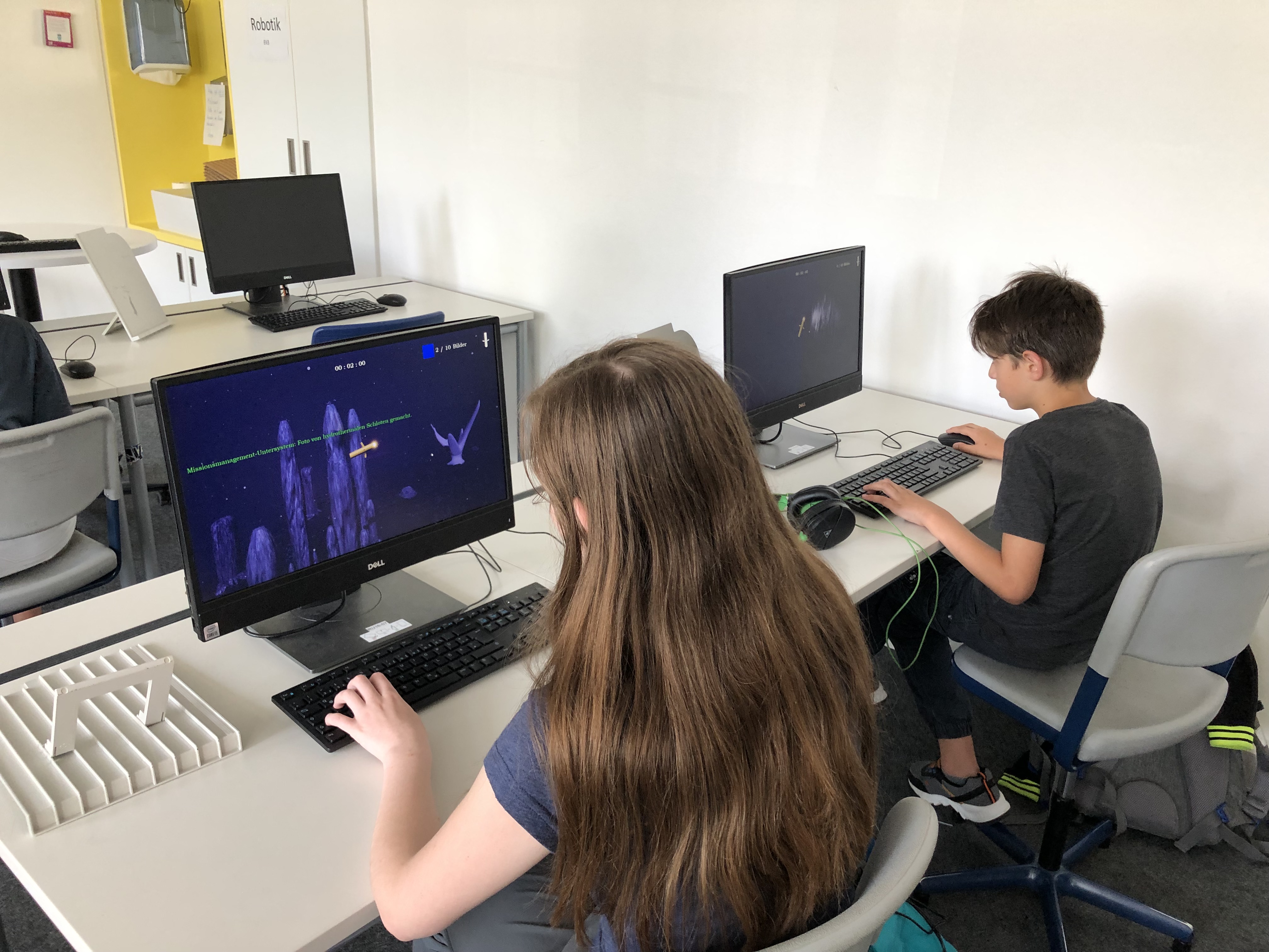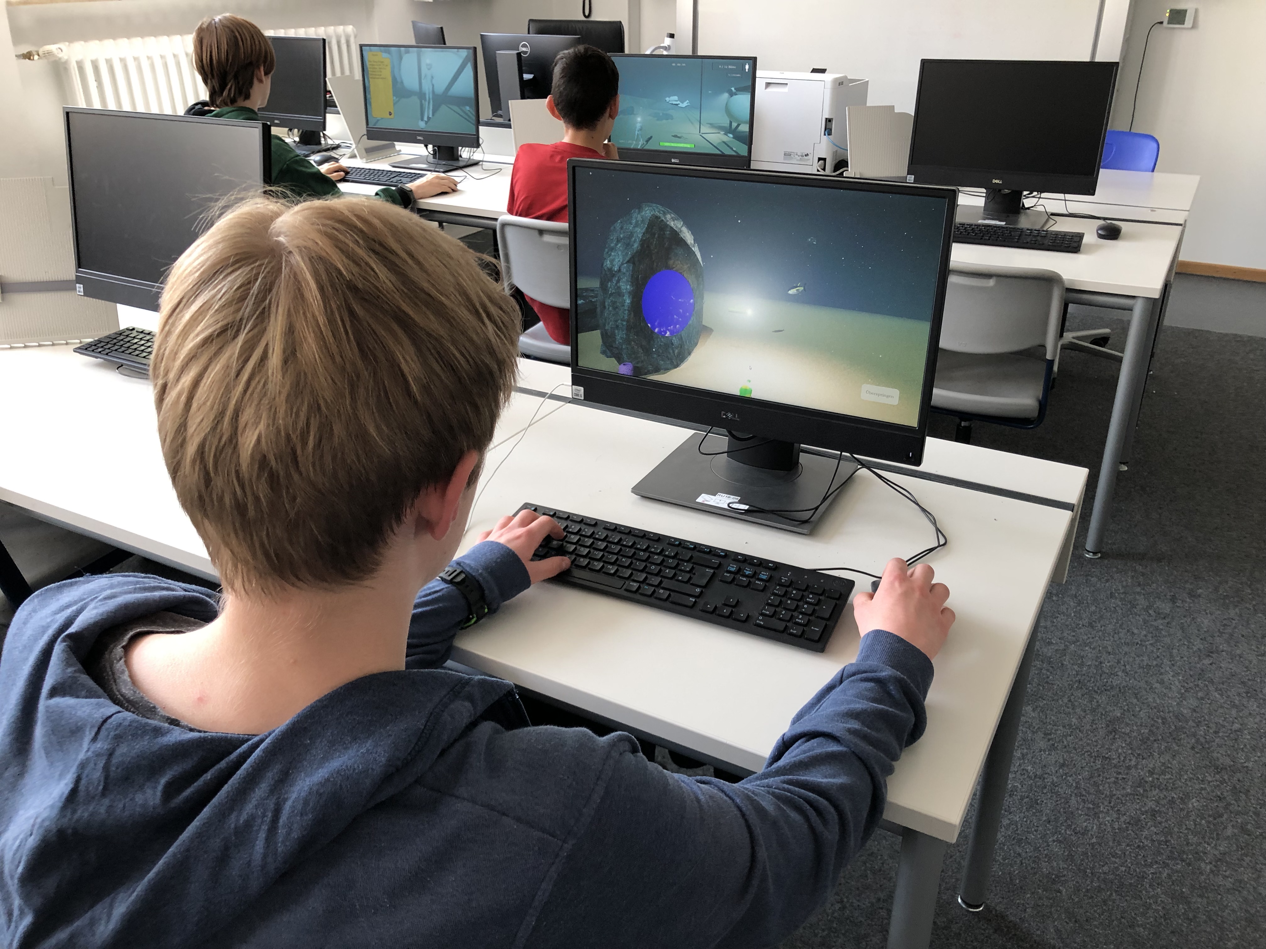 Letzte Woche hatten ein paar ausgewählte Schüler/-innen die Chance am Beta-Testing des Computerspiels „The Kaiyo Mission“ teilzunehmen, das diesen Sommer veröffentlicht werden soll. Ein Teil des Entwickler-Teams von eXplore-Studios, Virginie und Mario, kamen extra vorbei, um mit ein paar Freiwilligen das Spiel zu testen, zu bewerten und Feedback einzuholen.