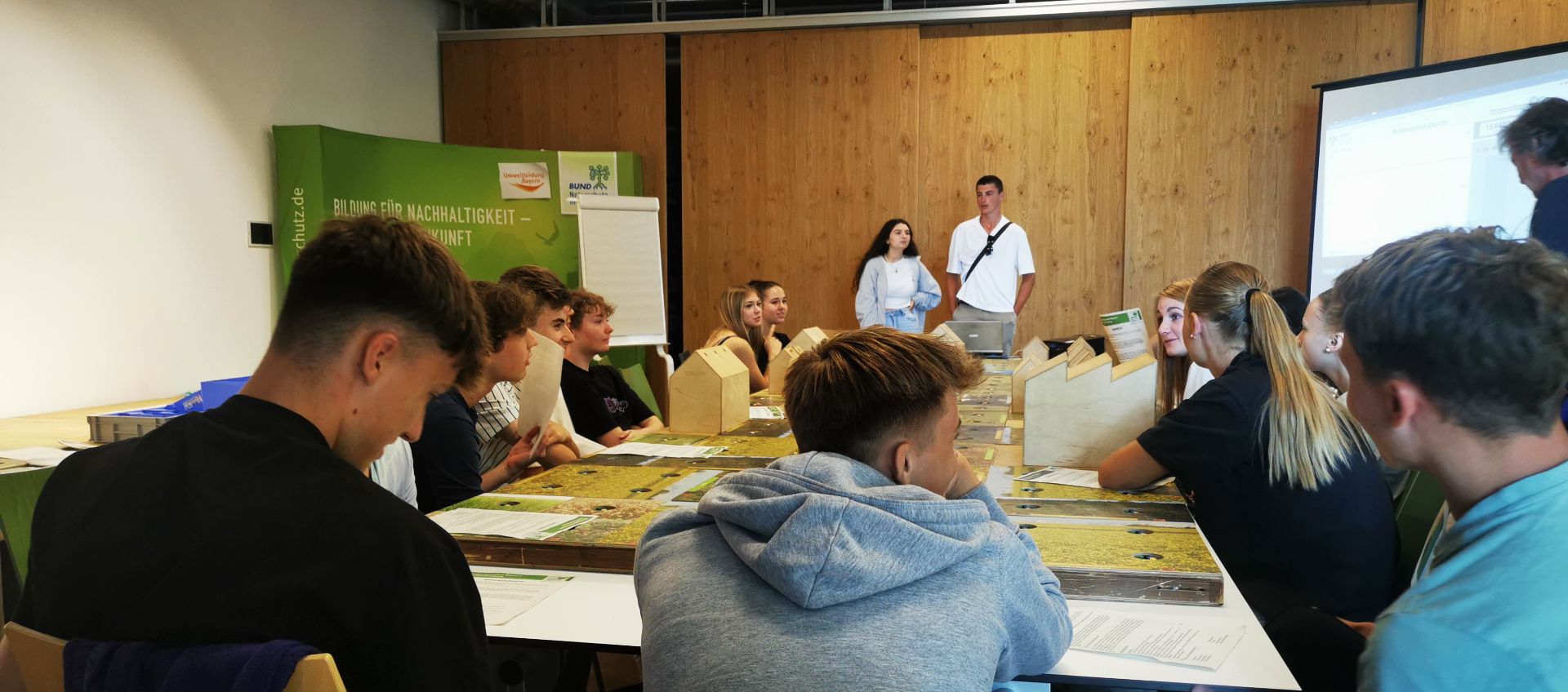 Am Mittwoch, den 12.07.2023 verbrachte die Klasse 9C mit Frau Stock und Herr Pfeifer einen Tag im Natur- und Jugendzentrum in Wartaweil. Begrüßt wurde die Klasse von Günter Schorn durch einen praktischen Versuch, wo die Schüler/-innen durch körperliche Anstrengung die Leistung von verschiedenen Alltagsgeräten testen durften. Ein Beispiel dafür war die Glühbirne, bei der von allen Geräten am meisten Leistung erzeugt wird und somit mehr körperlicher Einsatz erforderlich ist.