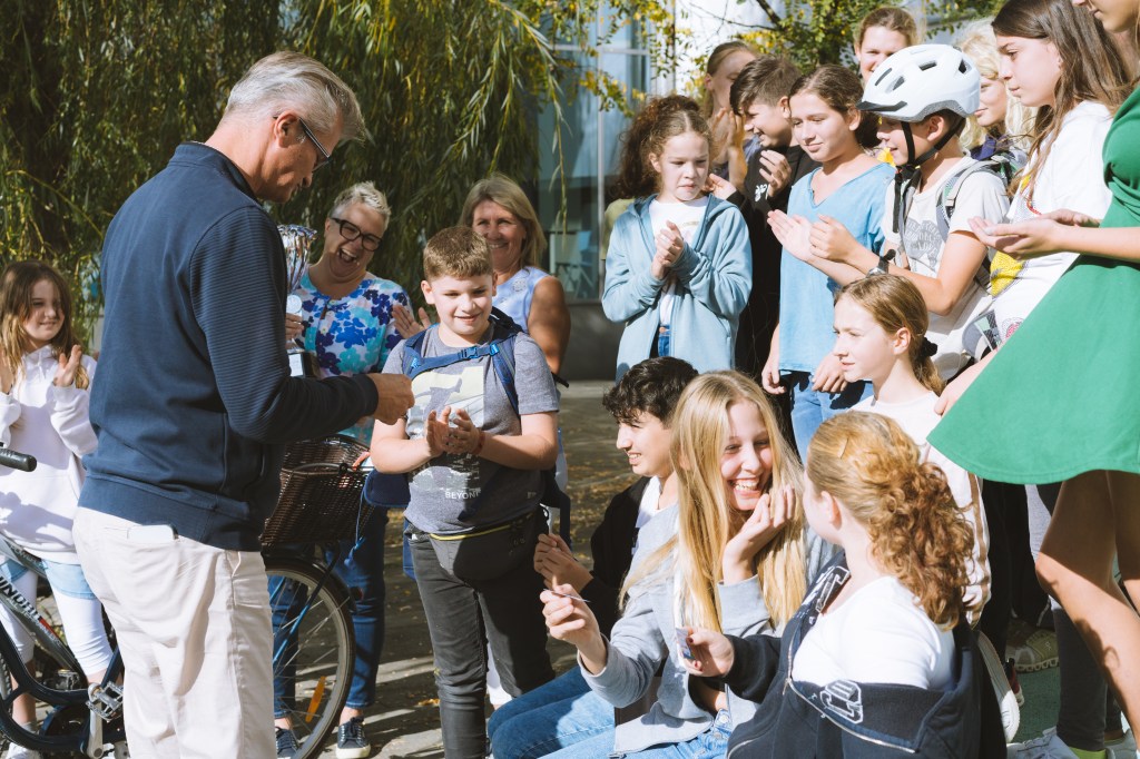 Insgesamt legte die Schulfamilie im Wettbewerbszeitraum 4272 Kilometer auf dem Fahrrad zurück und sparte damit 696 Kilogramm CO₂ ein.