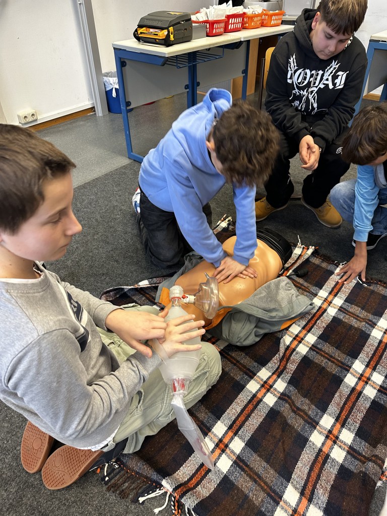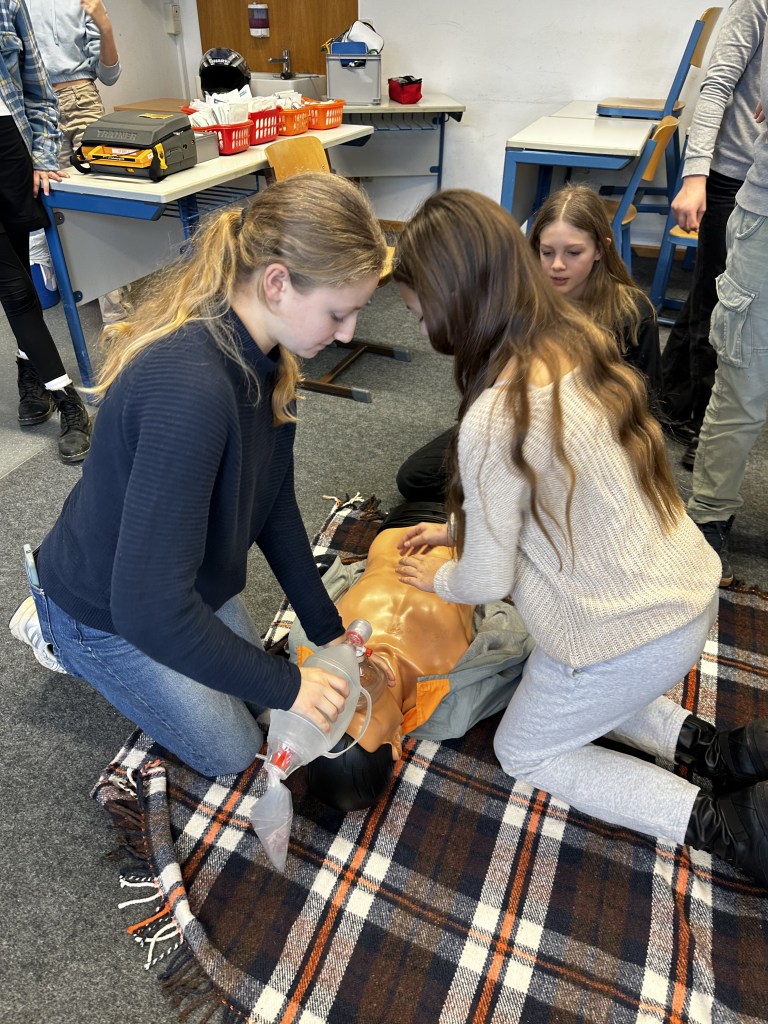 Am 19. und 20.12.23 nahmen unsere knapp 20 neuen „Schulsanis“ erfolgreich an einem Blockkurs in Erster Hilfe teil und haben sich somit für den aktiven Dienst im Schulsanitätsdienst der Realschule Herrsching qualifiziert. Neben den theoretischen Grundlagen, wurden den Teilnehmer/-innen auch zahlreiche praktische Handgriffe vermittelt, wie z.B. das Anlegen eines Druckverbandes oder die Herzdruckmassage.