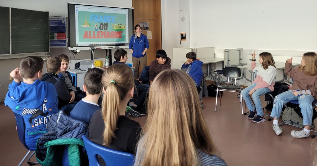 Am Ende waren die geographischen Kenntnisse gefragt. So sollten die TeilnehmerInnen anhand von Bildern zuordnen, ob die Sehenswürdigkeiten oder Landschaften entweder in Deutschland oder Frankreich liegen. Während die Dune du Pilat von den meisten Klassen ganz klar als die höchste Düne Europas in unserem Nachbarland verortet wurde, forderte die Brücke über den Neckar in Heidelberg die meisten Klassen ganz schön heraus. So haben sie am eigenen Leib erfahren, dass wir trotz unserer Nationalität nicht alles über unser Land wissen (können) und immer aufgeschlossen gegenüber neuen Kulturen und Ländern sein sollen. Vor allem Sprachkenntnisse erleichtern uns den Austausch miteinander bei Reisen oder im späteren Berufsleben und lassen viele neue Erfahrungen zu!