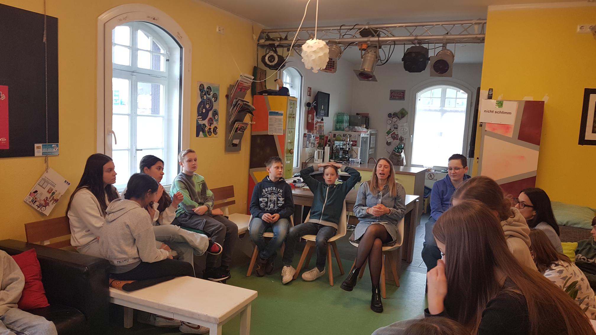 Im Februar durften alle unsere 6ten Klassen einen Schultag im Jugendzentrum Herrsching (‚Stellwerk‘) verbringen. Hier arbeiteten unsere Schüler*innen in drei Stationen zu unterschiedlichen Themen der Mediennutzung: