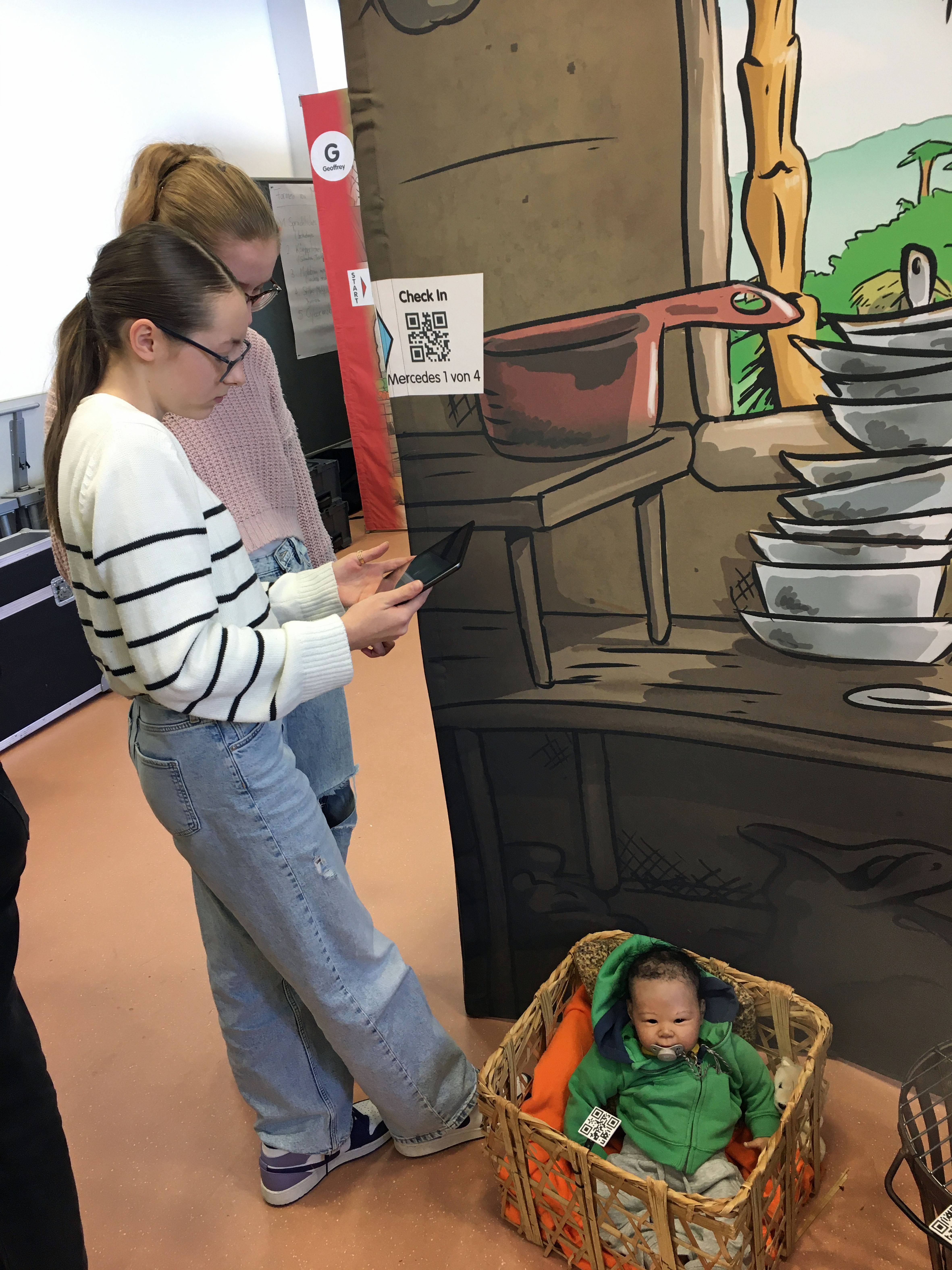 Zurückgegriffen wird dabei auf reale Projekte und Personen, die missio im Rahmen seiner Arbeit betreut. Unter Verwendung von iPads werden die Schülerinnen und Schüler interaktiv durch einen Rundgang geführt und können dabei die Schicksale von Mercedes, Geoffrey und Renu miterleben. Postkarten, die an die Protagonisten aus dem Spiel geschrieben werden können und die direkt in die entsprechenden Länder weitergeleitet werden, runden das Angebot ab.