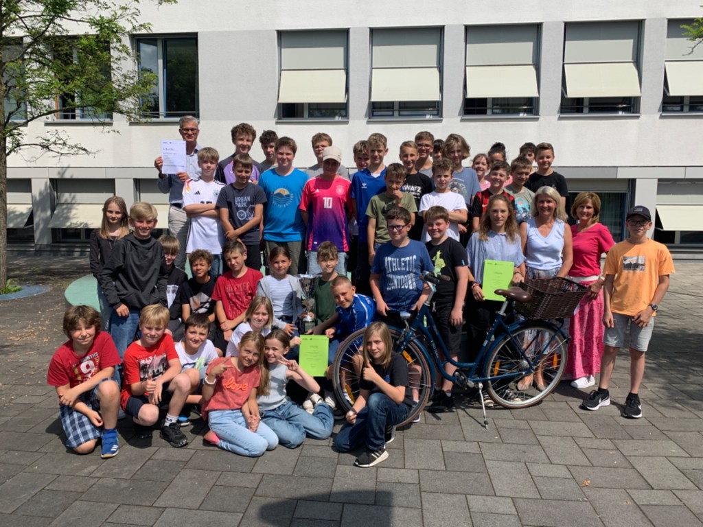 Die Realschule freut sich mit Schulleiter Christian Schmitz über die Silber-Auszeichnung beim diesjährigen Stadtradeln. Die Gemeinde Herrsching und das Klimabündnis verliehen der Schule die Urkunde für das radelaktivste Team. Außerdem bekam jeder Teilnehmer einen Gutschein für eine Kugel Eis.