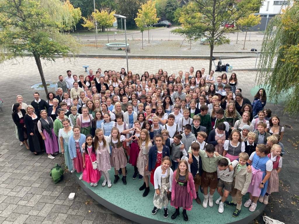 Passend zur Wiesn machten viele Mitglieder der Schulfamilie beim „Trachtentag“ der SMV mit und kamen in Dirndl und Lederhosen in die Schule. In den Pausen gab es zünftige Bierzeltmusik und die neuen Verbindungslehrer Melanie Wederhake und Andi Drexl verteilten Süßigkeiten im Atrium.