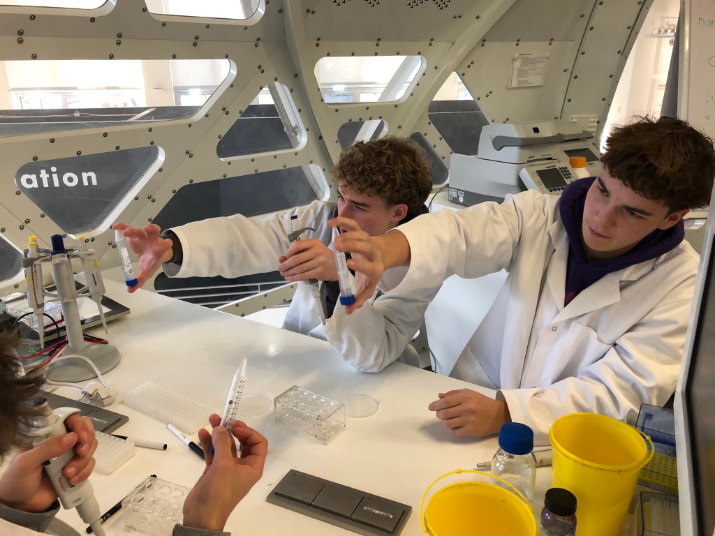 Ein Highlight des Ausflugs war die praktische Erfahrung im DNA-Labor. In einem kugelförmigen Labor, das fast freischwebend über einer Ausstellung mitten im Raum hing, hatten die Schülerinnen und Schüler die Möglichkeit, ihre eigene DNA zu isolieren. Unter Anleitung erfahrener Wissenschaftler lernten sie, wie man DNA aus eigenen Zellen gewinnt und welche Techniken dabei zum Einsatz kommen, sowie viele interessante Zusatzinformationen. Diese praktische Anwendung des theoretischen Wissens war für viele ein unvergessliches Erlebnis und weckte vielleicht beim ein oder Anderen sogar das Interesse an naturwissenschaftlichen Berufen.