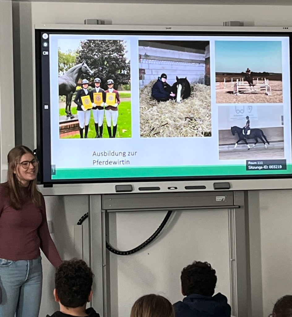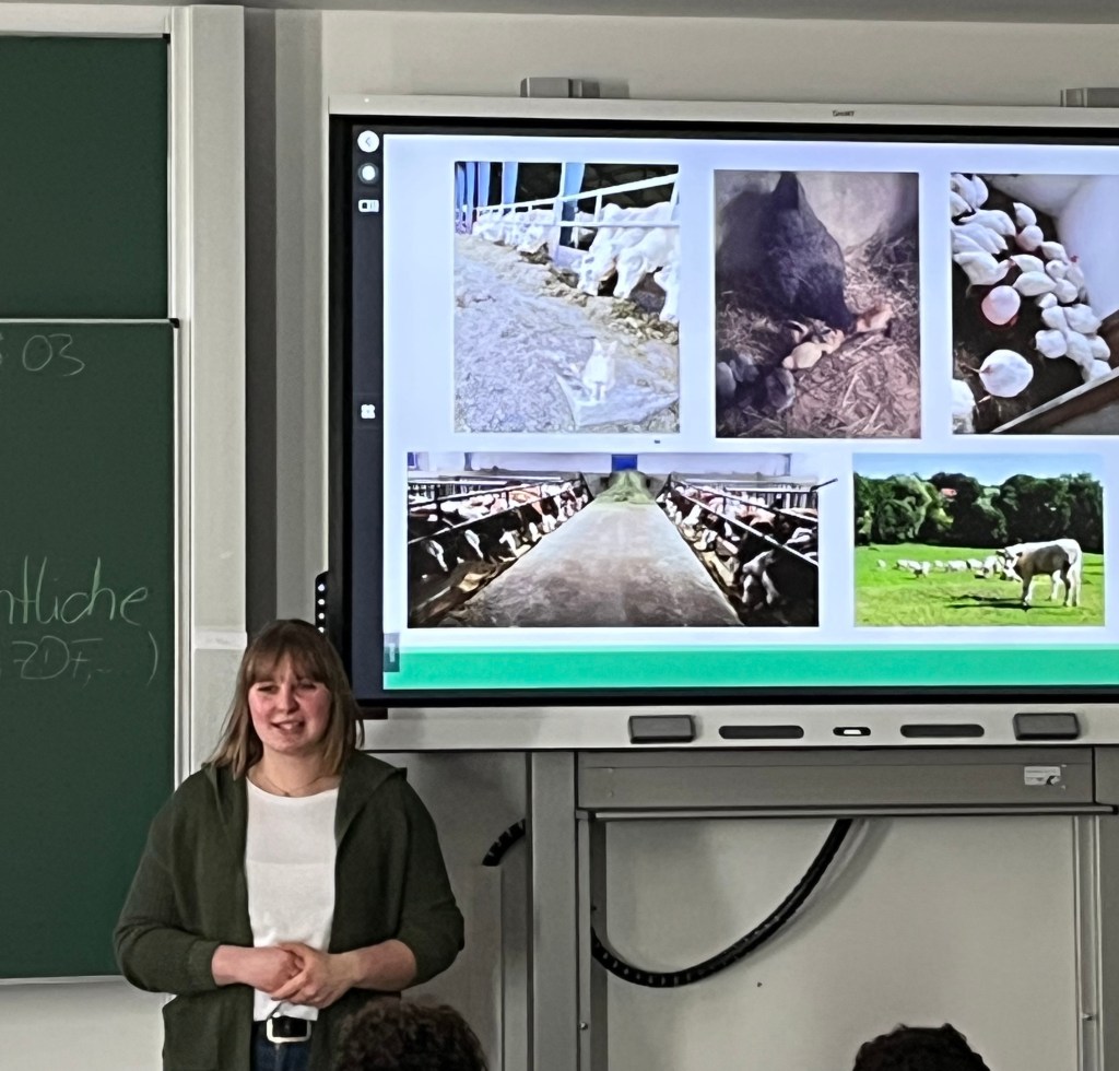 Der Besuch an unserer Schule stellt einen Baustein des Grundkurses dar. Im Rahmen der Vorträge wurden die unterschiedlichsten Aspekte thematisiert: artgerechte Tierhaltung, Bodenfruchtbarkeit, ökologischer Landbau, das Berufsbild und seine Verdienstmöglichkeiten, aber auch Themen wie „Urlaubsplanung“ und das Konzept der „Erlebnisbauernhöfe“ kamen zur Sprache.