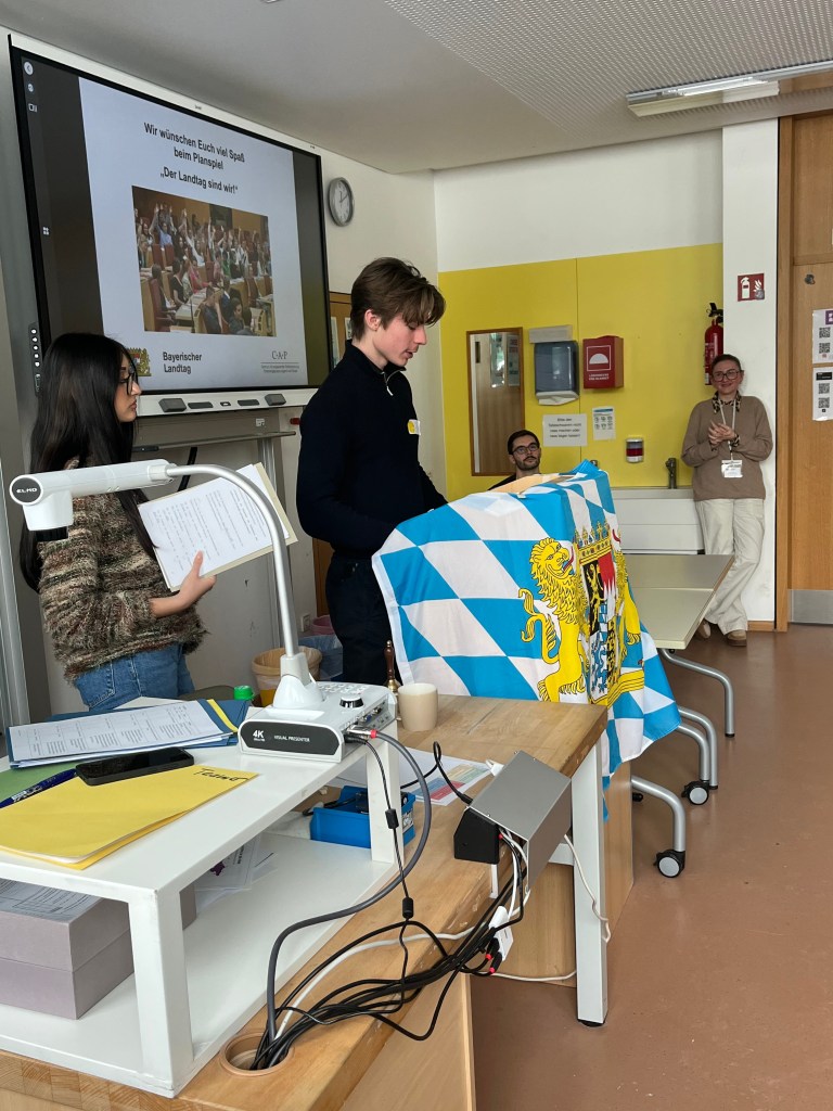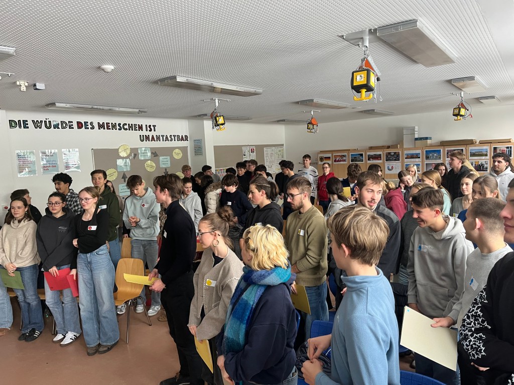 Am 8. Januar kamen die Klassen 10a, 10c und 10f in einen besonderen Genuss: Sie durften am Planspiel „Der Landtag sind wir“ teilnehmen. Auch in diesem Schuljahr hat die RSH wieder vom Angebot des Landtags profitiert und es kamen drei Studentinnen und Studenten des CAP zu uns an die Schule, um das Planspiel professionell mit den 67 Schülerinnen und Schülern durchzuführen. Dabei schlüpften alle in eine Rolle, die sie den gesamten Tag spielten: Abgeordnete einer der vier fiktiven Fraktionen des Bayerischen Landtags. In ihren jeweiligen Fraktionen stimmten sich die Abgeordneten zunächst über den Gesetzentwurf der „Sozialen“ ab, der auf die bessere Integration von Geflüchteten abzielte. Die Schüler haben sehr schnell erkannt, dass alle politischen Entscheidungen davon abhängen, wie viel Geld die Maßnahmen kosten. Und so wurde recht schnell die geforderte Zahl der Lehrer von 2.500 auf 1.500 gesenkt und auf die Möglichkeit der Digitalisierung beim Erlernen von Sprache verwiesen. Das und weitere Einzelheiten wurde in verschiedenen Ausschüssen verhandelt. Am Ende stand ein veränderter Gesetzentwurf, der von der neu gewählten Landtagspräsidentin zur Abstimmung gegeben wurde: das Gesetz erhielt eine fast vollständige Zustimmung. Das passiert wohl in der Realität eher selten, zeigt aber vielleicht, dass „unsere Abgeordneten“ gute Kompromisse hinter den Kulissen finden konnten.