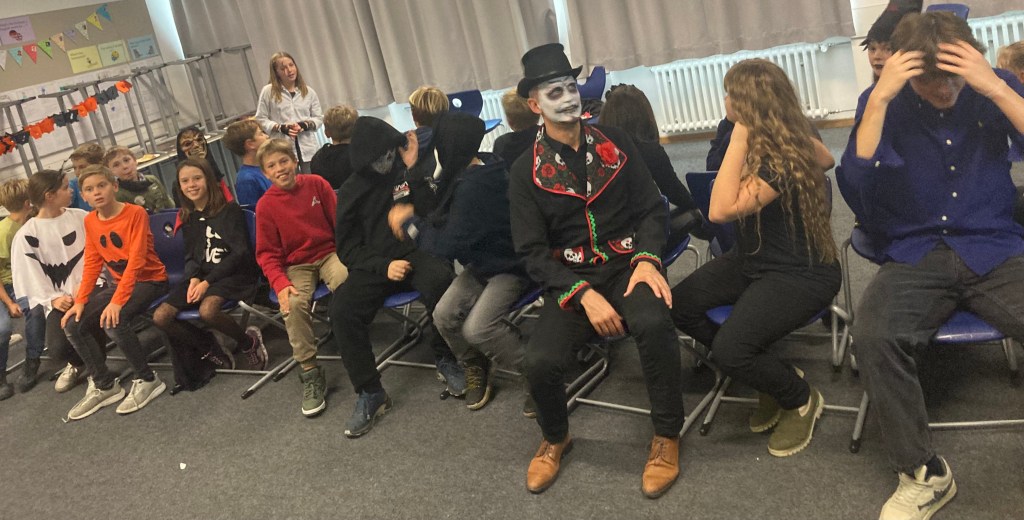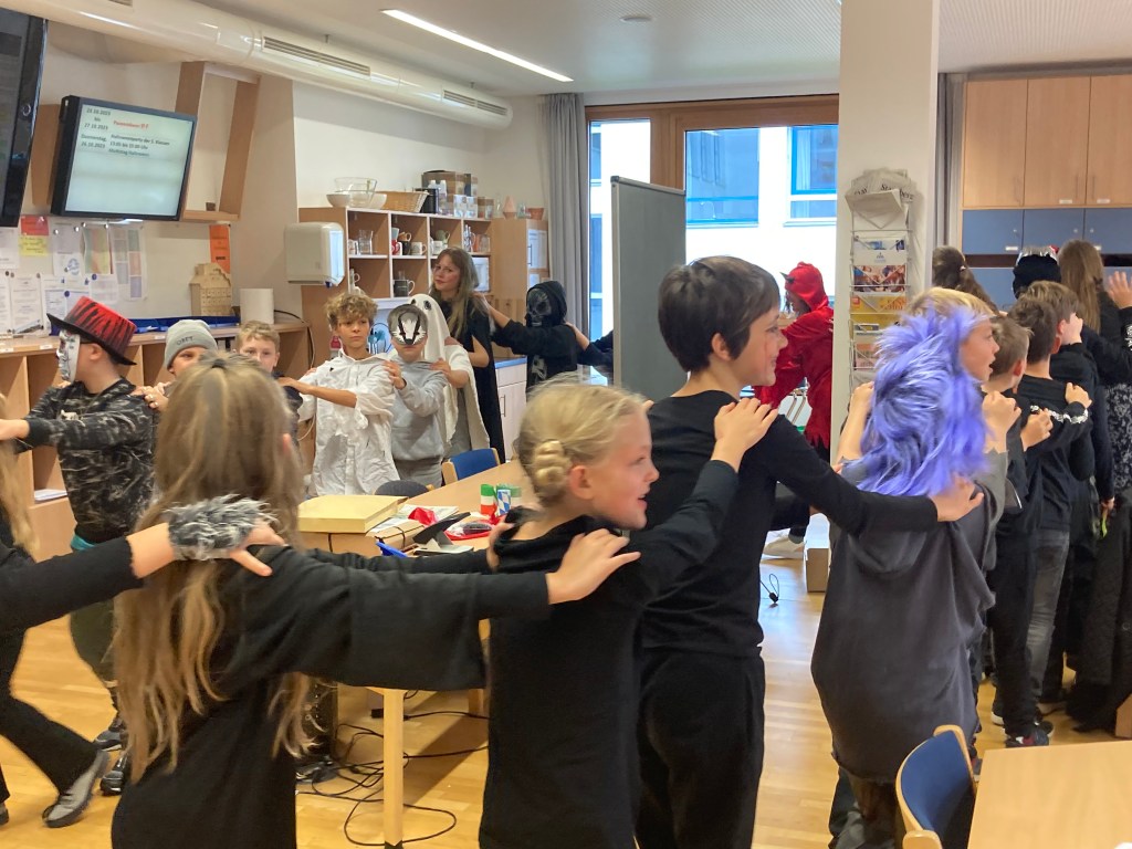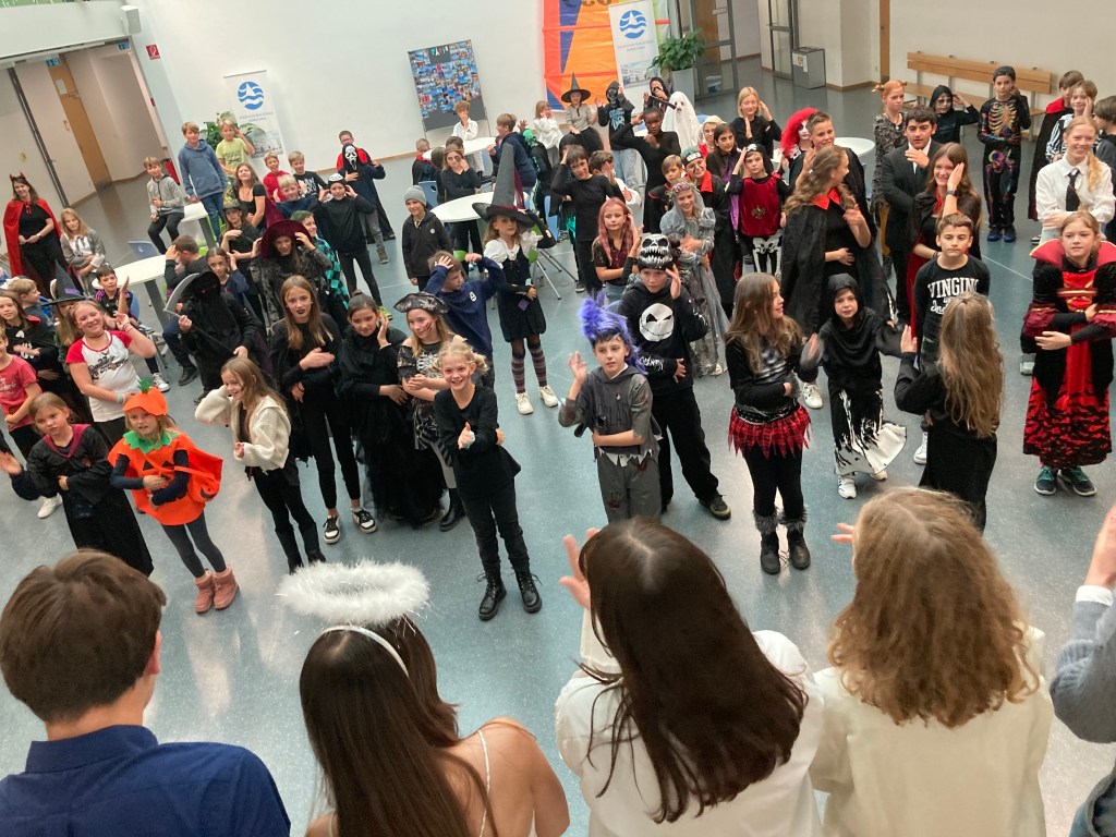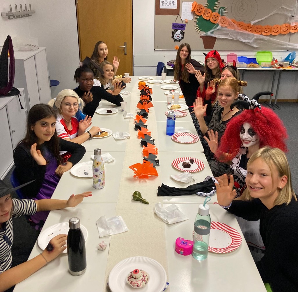 Am 26.10 war es wieder soweit! Endlich konnten die Fünftklässler:innen ihre erste Party an unserer Schule feiern: in den von den Tutor:innen fantasievoll gestalteten Klassenzimmern war Gelegenheit zum Verspeisen der von vielen Eltern liebevoll zubereiteten Köstlichkeiten am Buffett sowie zum ausgiebigen Spielen und Tanzen. Auch eine Schatzsuche und eine Polonaise, die sogar durch die „heilige Halle“ des Lehrerzimmers führte, war dabei. So manche bis zur Unkenntlichkeit verkleidete Lehrkraft wurde gesichtet und bereicherte dabei das tolle Treiben!“