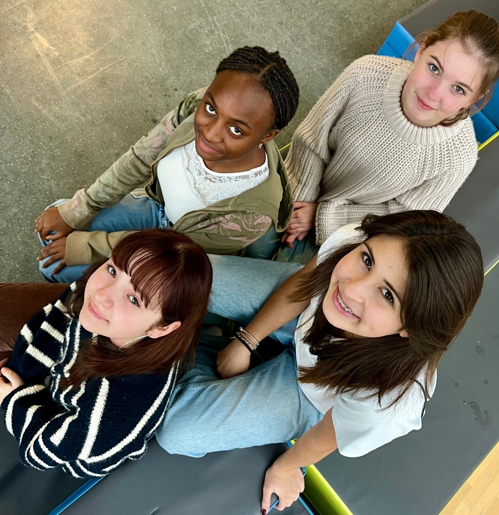 Maja, Fatima, Nelia uns Selina aus der 8e engagieren sich in diesem Schuljahr in der Projektgruppe „Schule ohne Rassismus – Schule mit Courage“. Über weitere Verstärkung würden sie sich freuen.