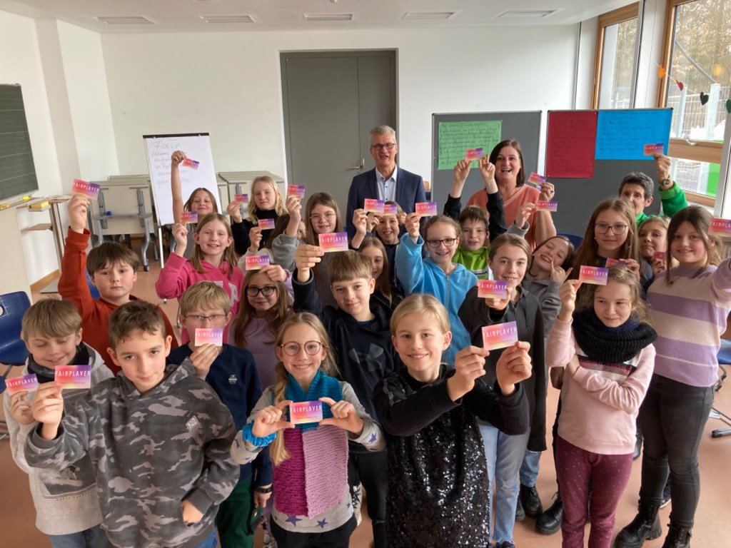 Impressionen aus dem „Fairplayer“ = Anti-Mobbing Training, das ein Teil des „WIR“-Projekts für die fünfte Jahrgangsstufe ist. Zu sehen hier die Klasse 5e beim Rollenspiel und bei der Verleihung des „Fairplayer Ausweises“ zum Abschluss der 7-wöchigen Einheit mit Herrn Schmitz, Frau Hopf und Frau Stöckle.