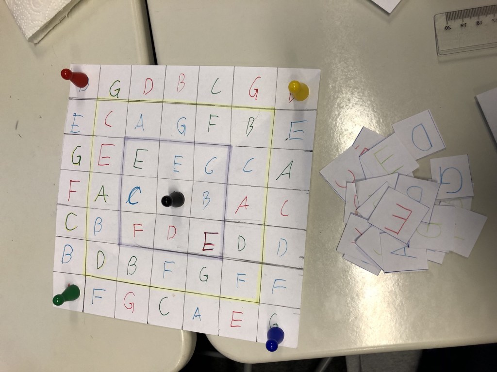 Die ersten beiden Tage fanden online statt und die Dozenten wurden ins Klassenzimmer zugeschaltet. Die letzten drei Tage konnten wir live in der HNU Neu-Ulm wahrnehmen. Am 1. Workshoptag wurden in sechs Kleingruppen verschiedene Prototypen für eigene Brettspiele entwickelt und vorgestellt. Hier eine kleine Auswahl …