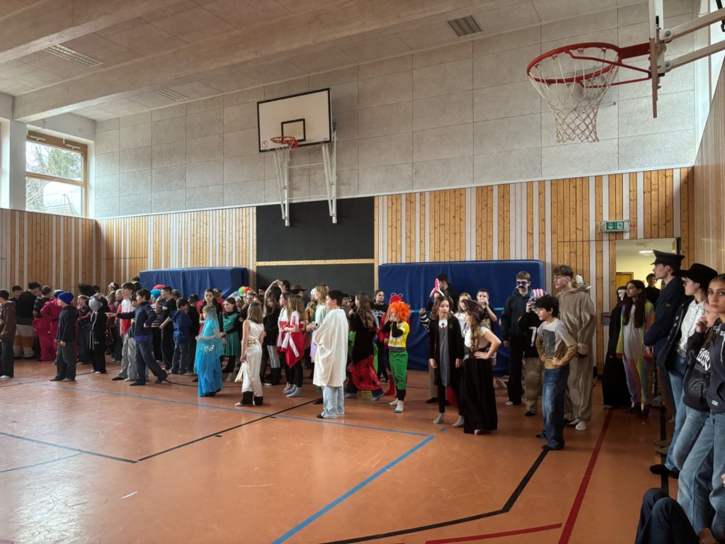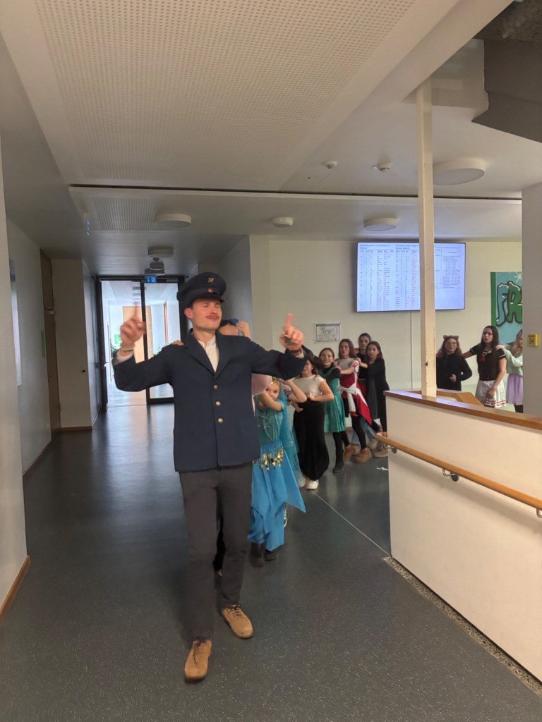 Zum krönenden Abschluss versammelten sich alle im Atrium – und dort wartete das Highlight: die legendäre Polonäse. In einer langen, fröhlichen Schlange zog die bunte Truppe durch das Atrium und sorgte für echtes Faschingsfeeling.