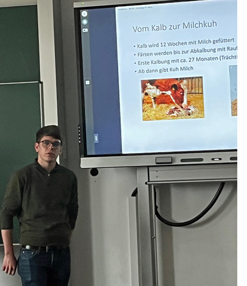Der Besuch an unserer Schule stellt einen festen Bestandteil des Grundkurses dar. Im Rahmen der Vorträge wurden vielfältige Themenbereiche behandelt, darunter artgerechte Tierhaltung, Bodenfruchtbarkeit, ökologischer Landbau sowie das Berufsbild des Landwirts und seine Verdienstmöglichkeiten. Darüber hinaus kamen auch Aspekte wie Urlaubsangebote auf dem Bauernhof und das Konzept der „Erlebnisbauernhöfe“ zur Sprache.